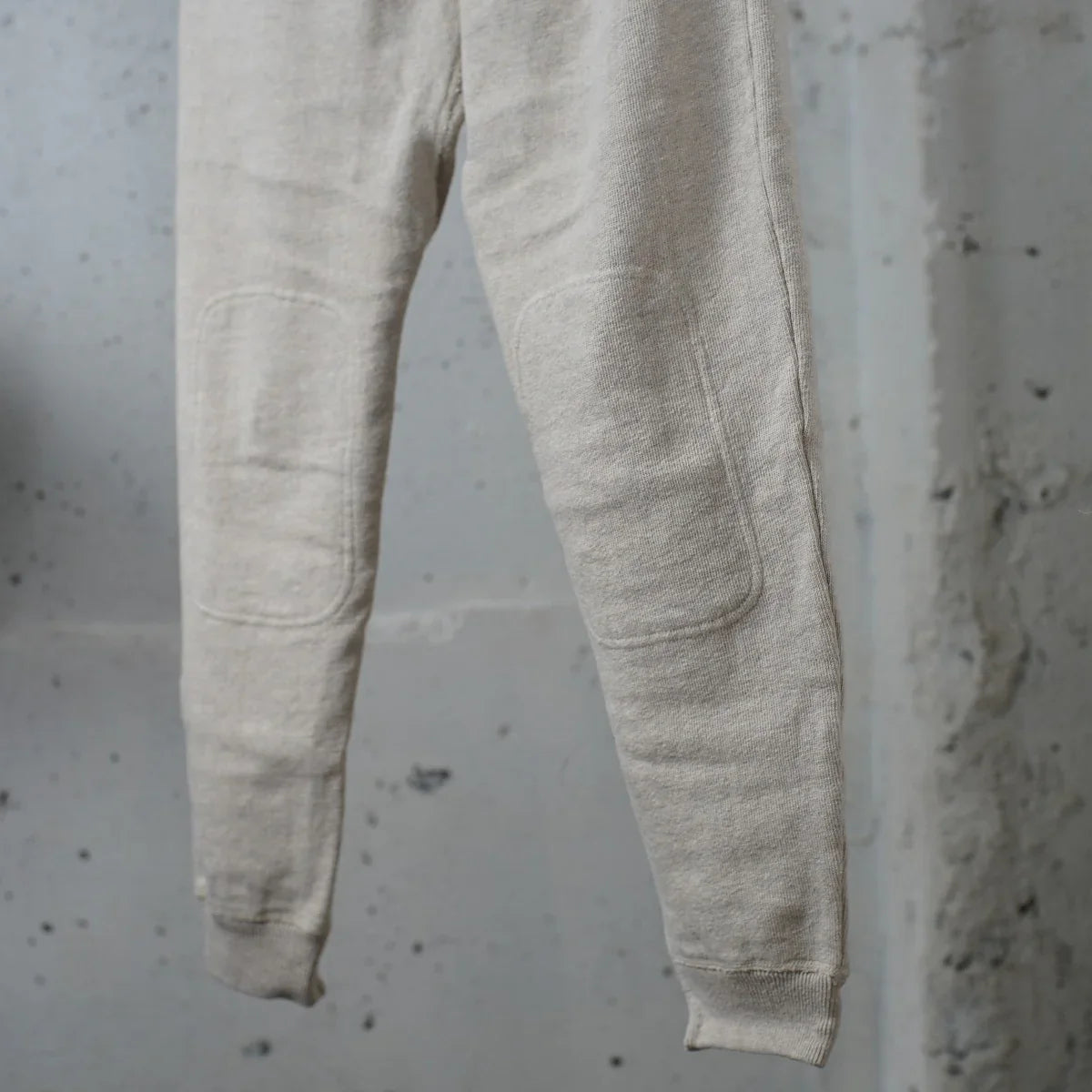 両ひざの裏部には補強のために天竺生地を縫い合わせており、着用を重ねてもひざが出にくくなっています。長く愛用できる耐久性を備えています。