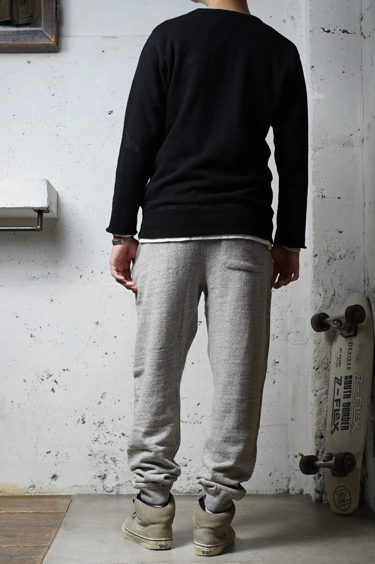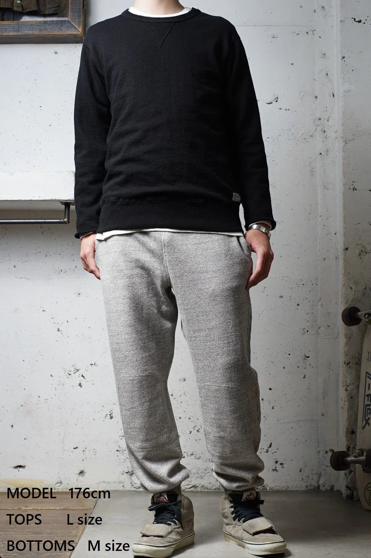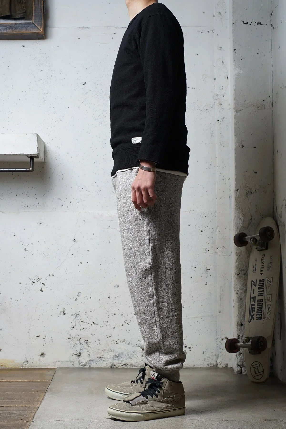 スウェットパンツの実用性と、上品な雰囲気を兼ね備えた一着です。