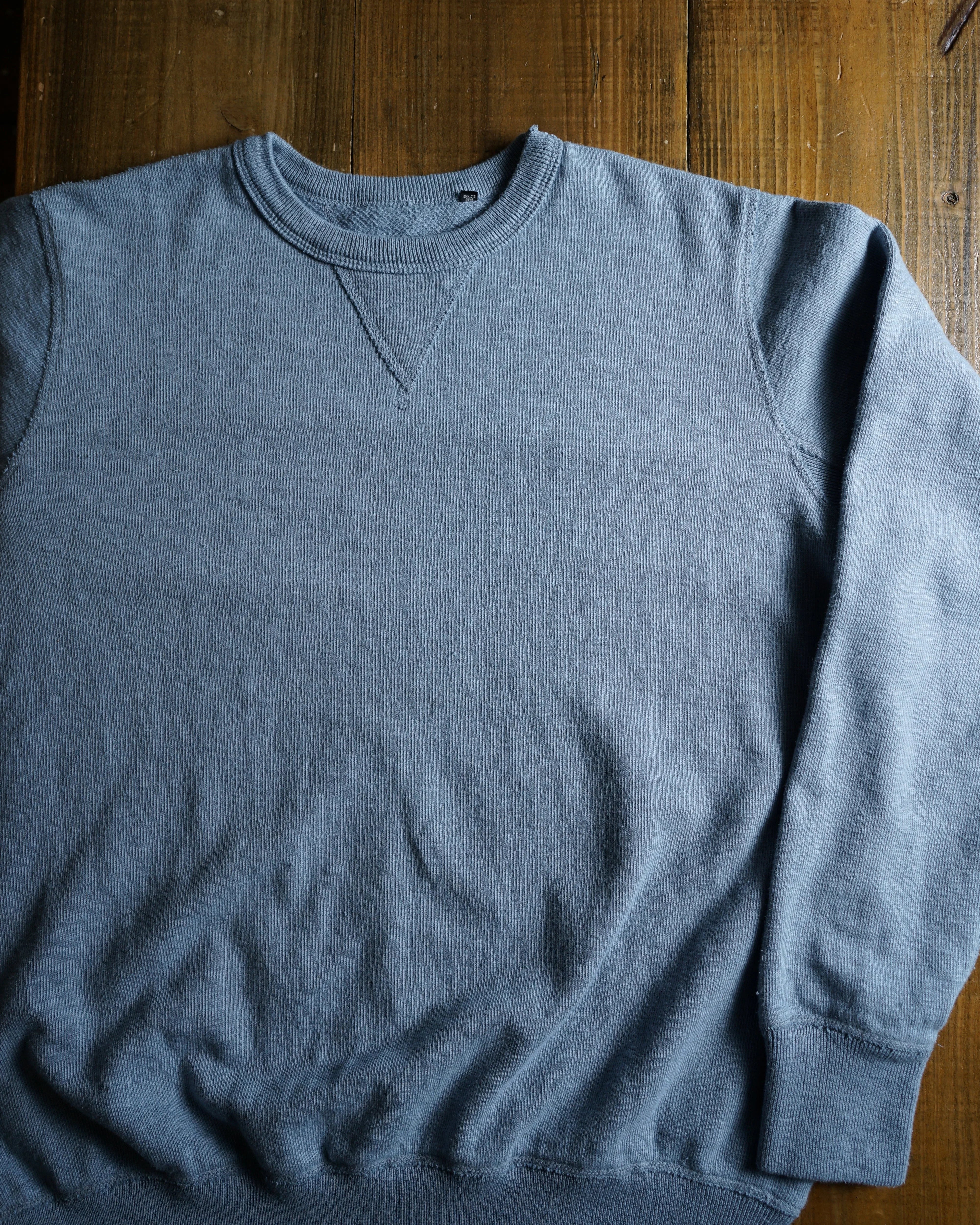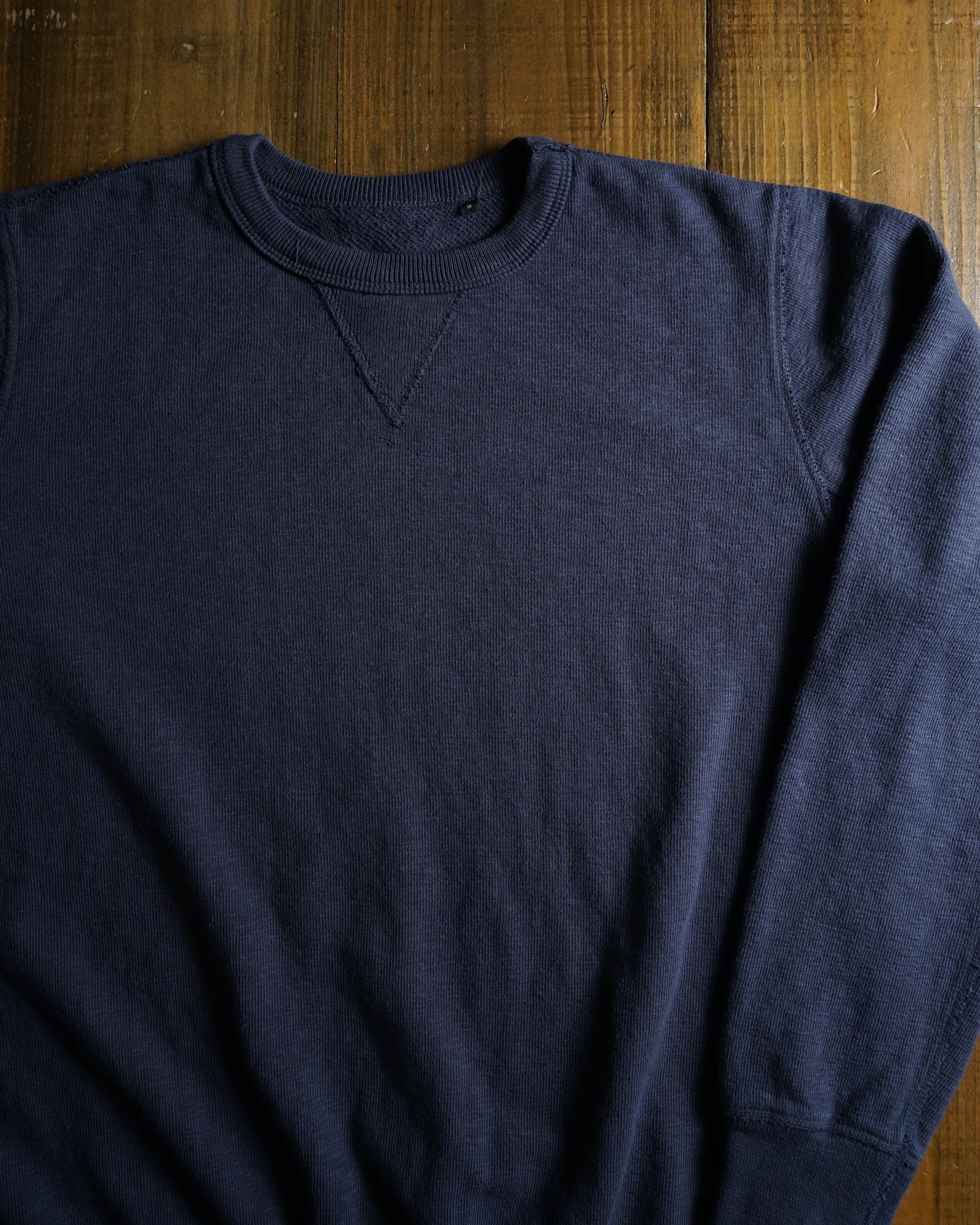 首元の前後と両脇下にはガゼットを施し、クラシックなヴィンテージスウェットのディテールを再現。