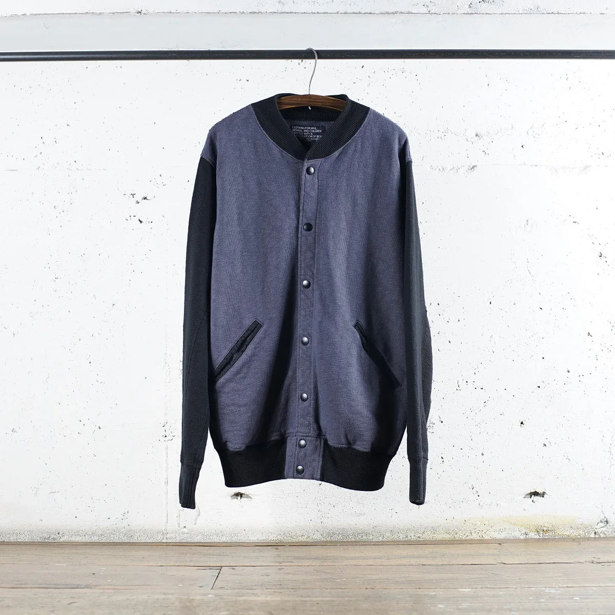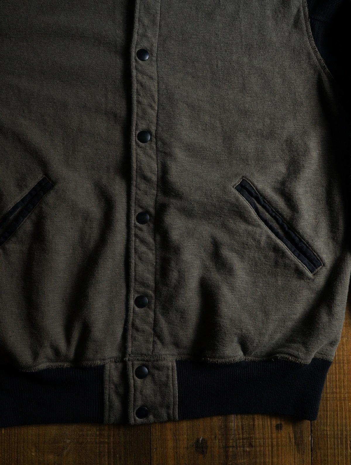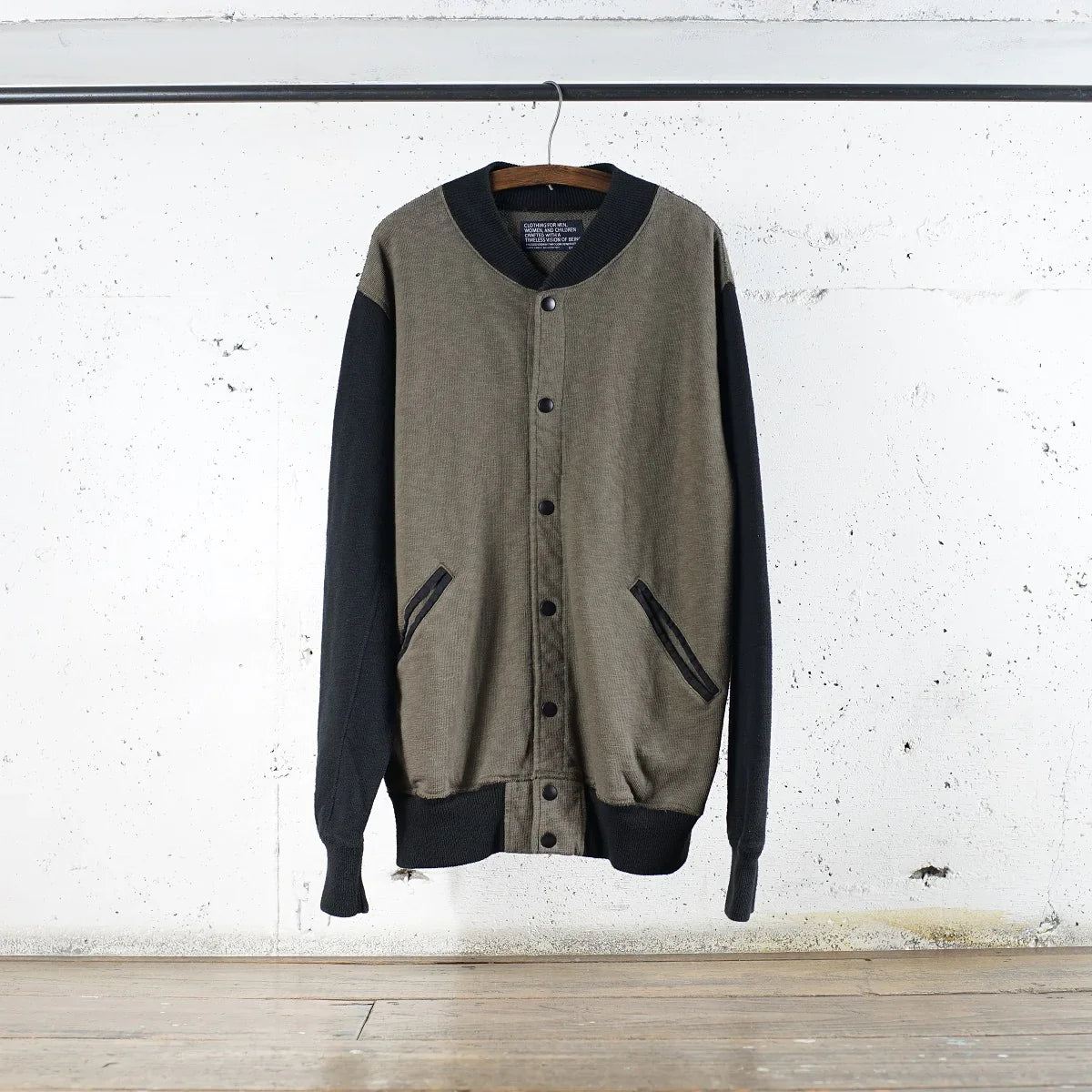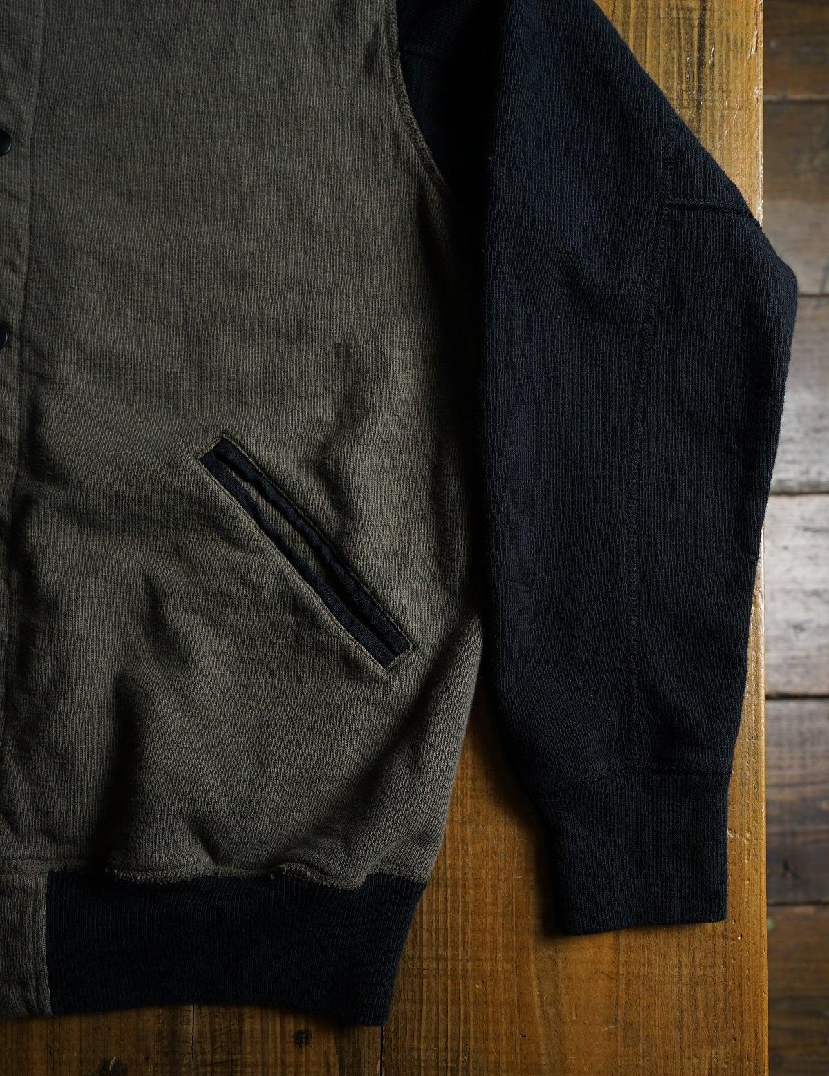 首元、ウエスト、両袖はBLACKを入れながら、前身はマットなスナップボタン仕様で落ち着いたスタジャンになるように。