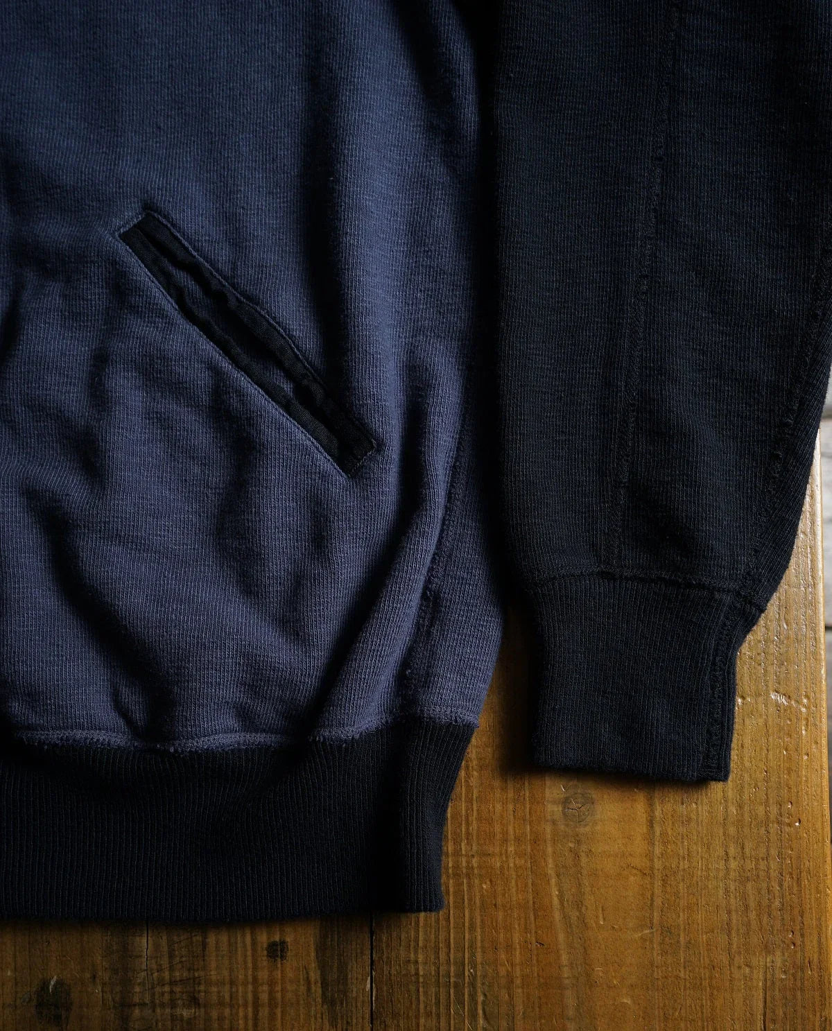 袖付けはセットインに仕上げ、縫製はビンテージスウェットに用いられていたフラットシームを使用。古き良き時代のディティールも融合し、細かい部分までこだわりました。