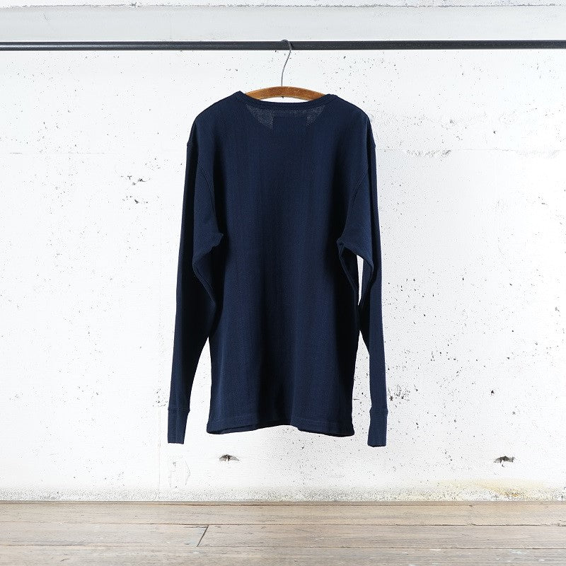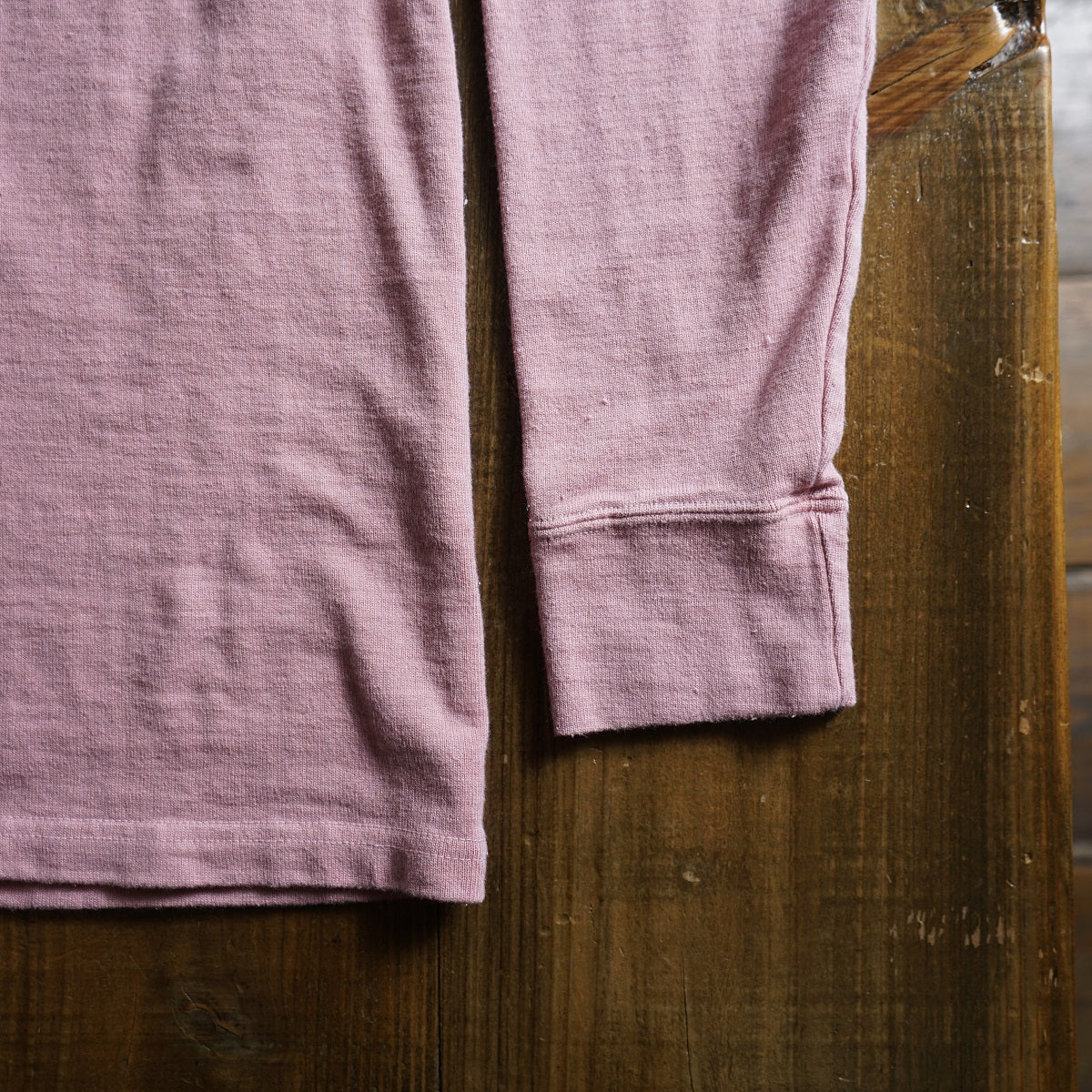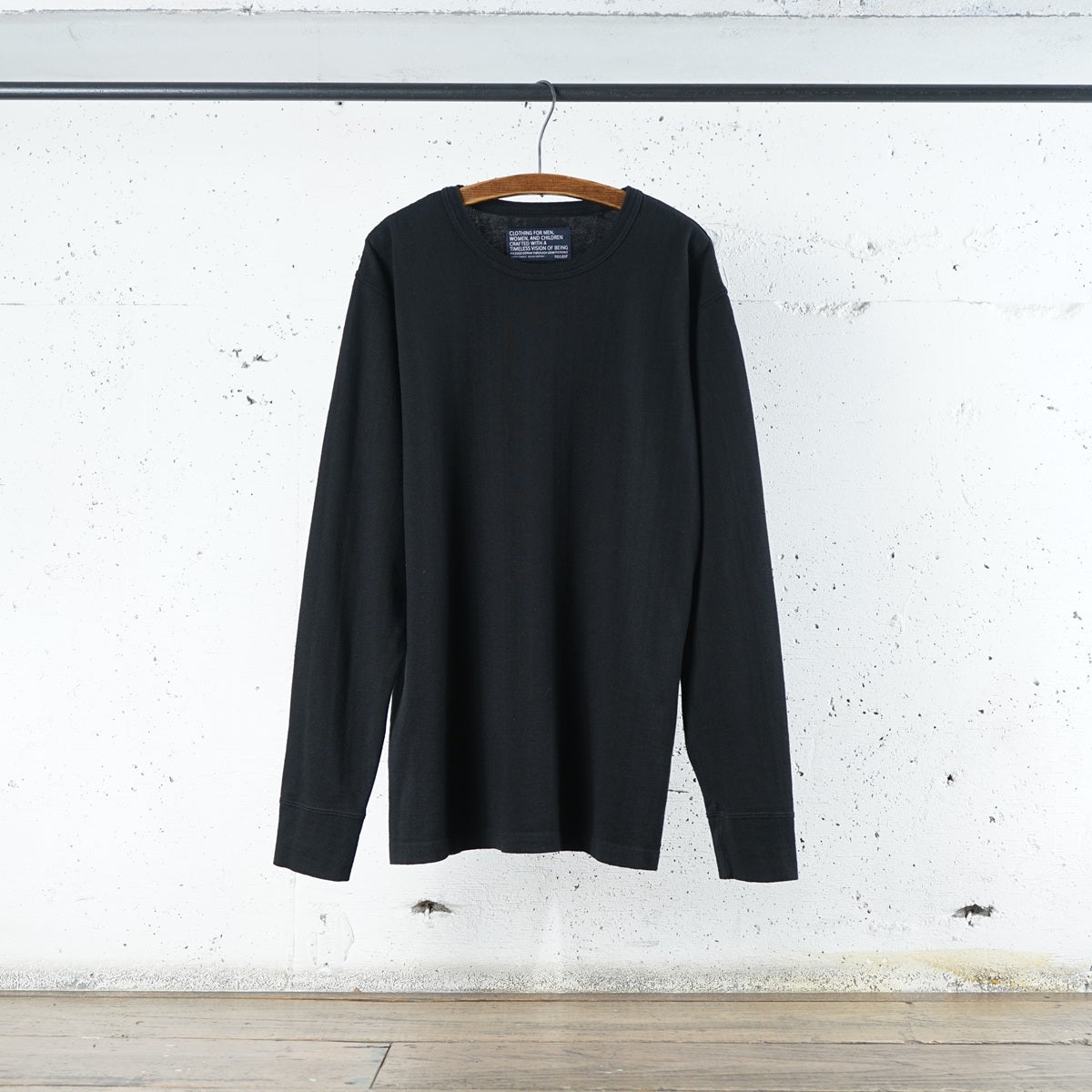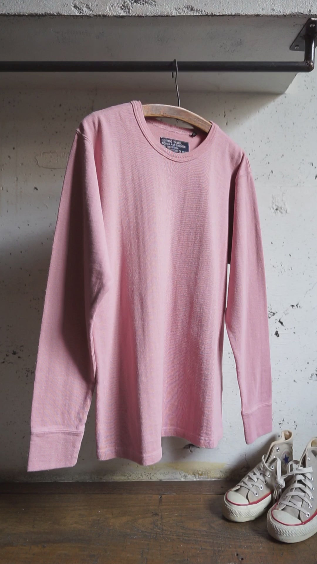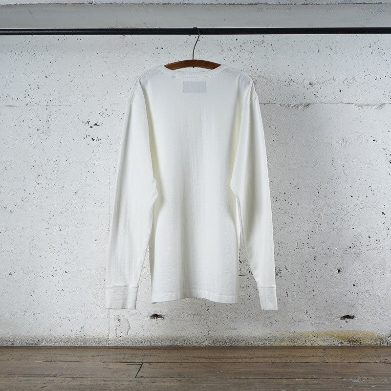 旧式吊り編み機で編み上げた、コットン×レーヨンのブレンド糸による厚めの天竺生地を使用。DF独自のレシピでゆっくりと編み上げることで、柔らかさと耐久性があり、着るほどに肌に馴染む極上の着心地に。
