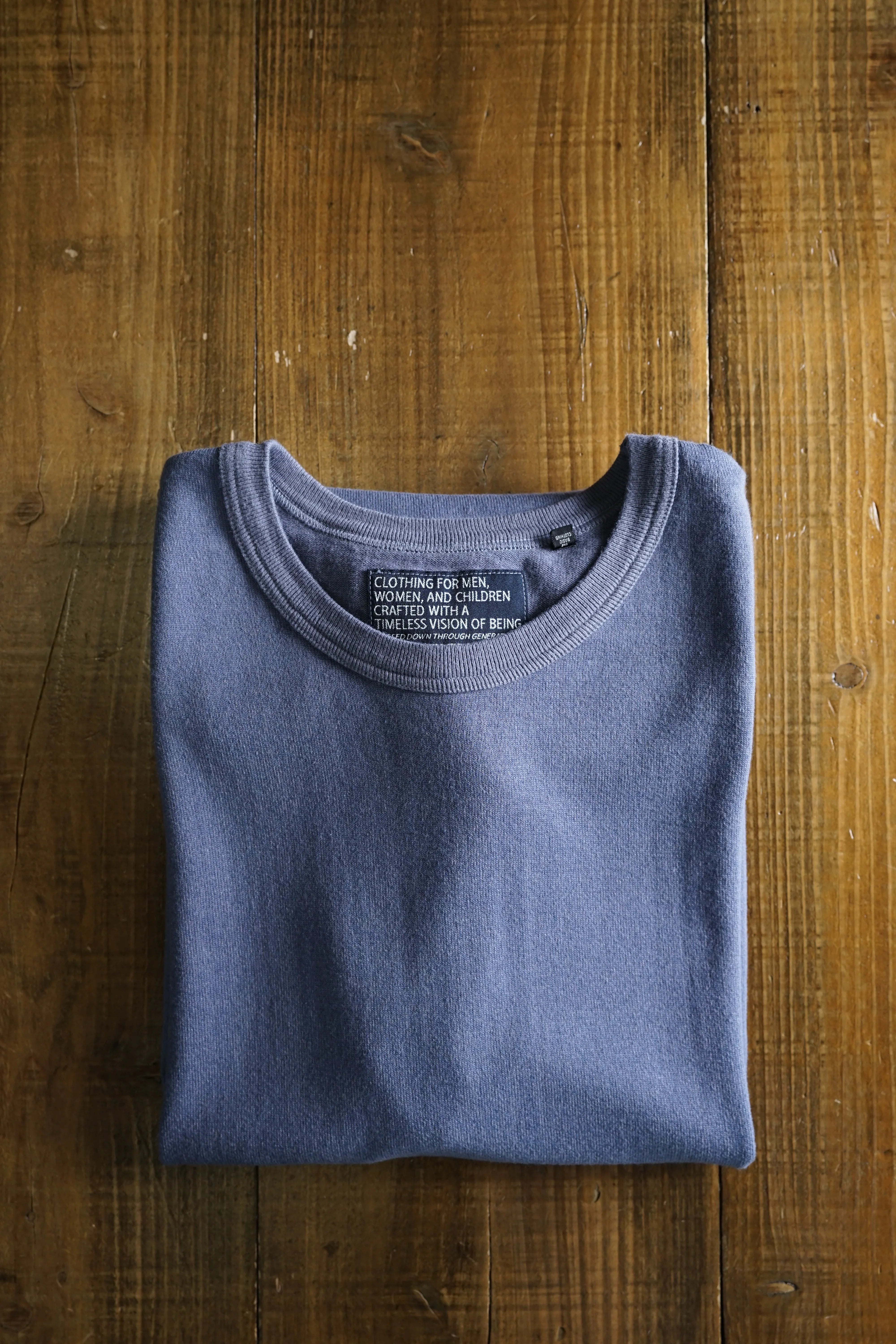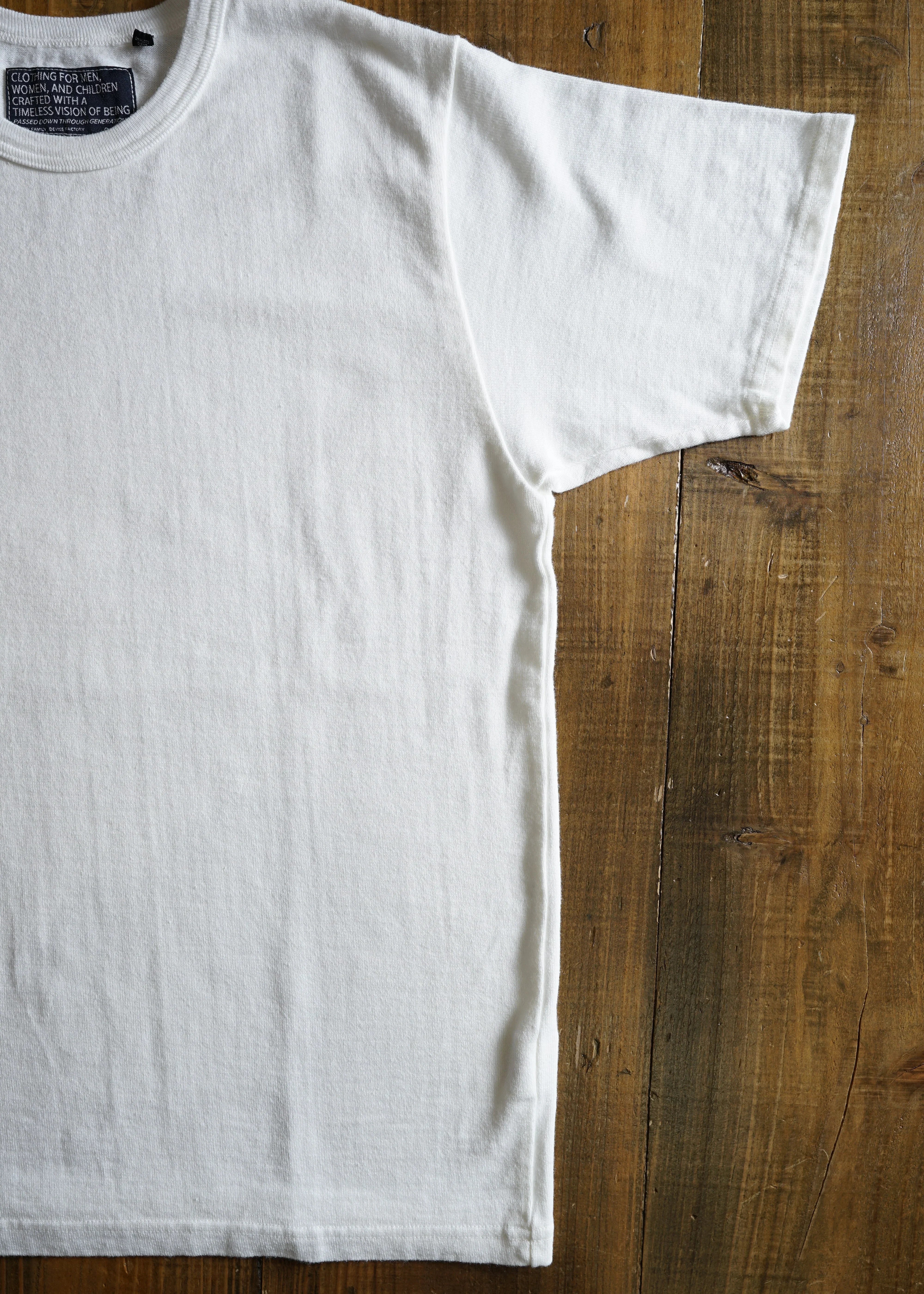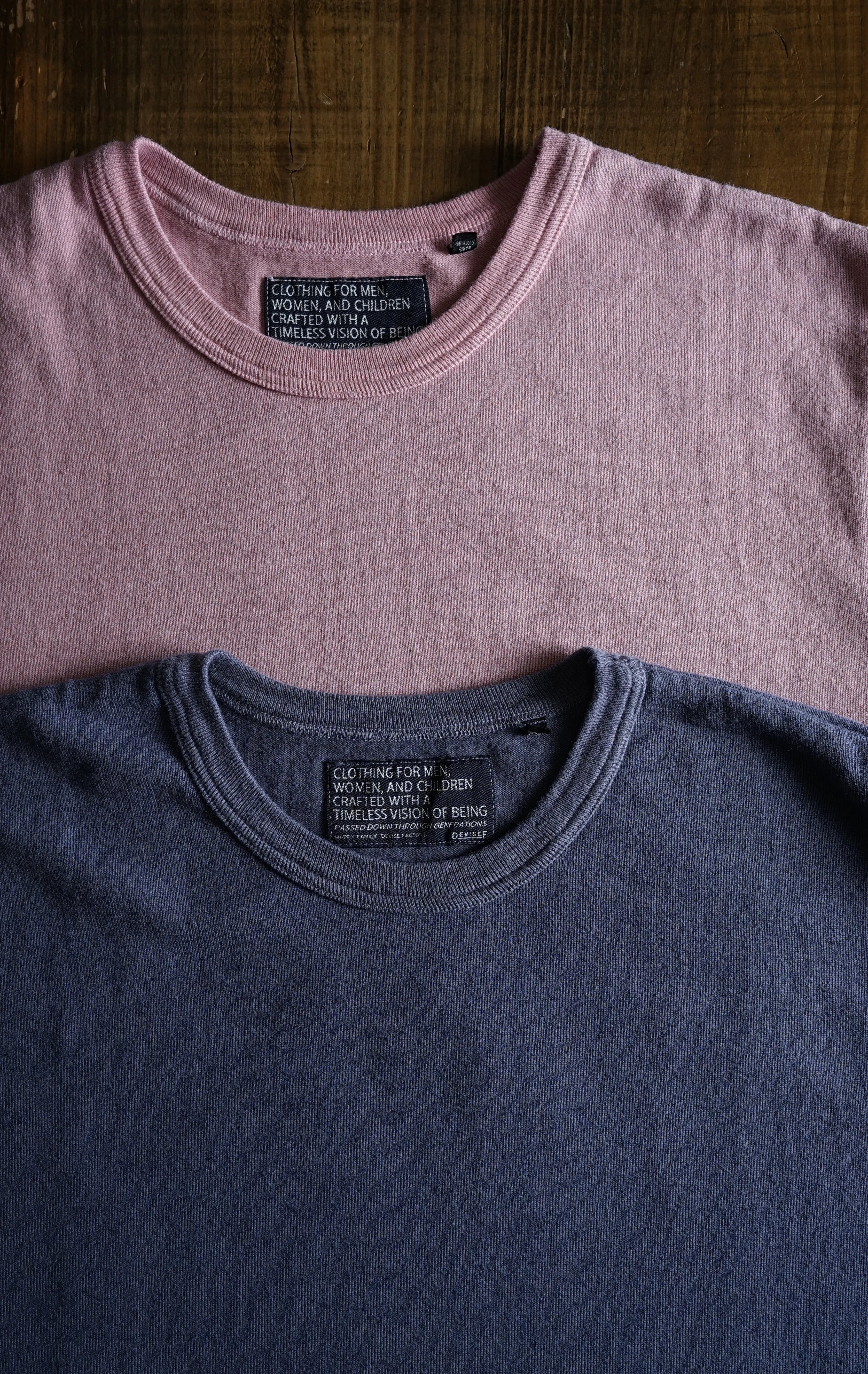 コットン×レーヨンのブレンド糸を使い、DF独自のレシピでゆっくりと編み上げることで、柔らかさと耐久性があり、着るほどに肌に馴染む極上の着心地に。