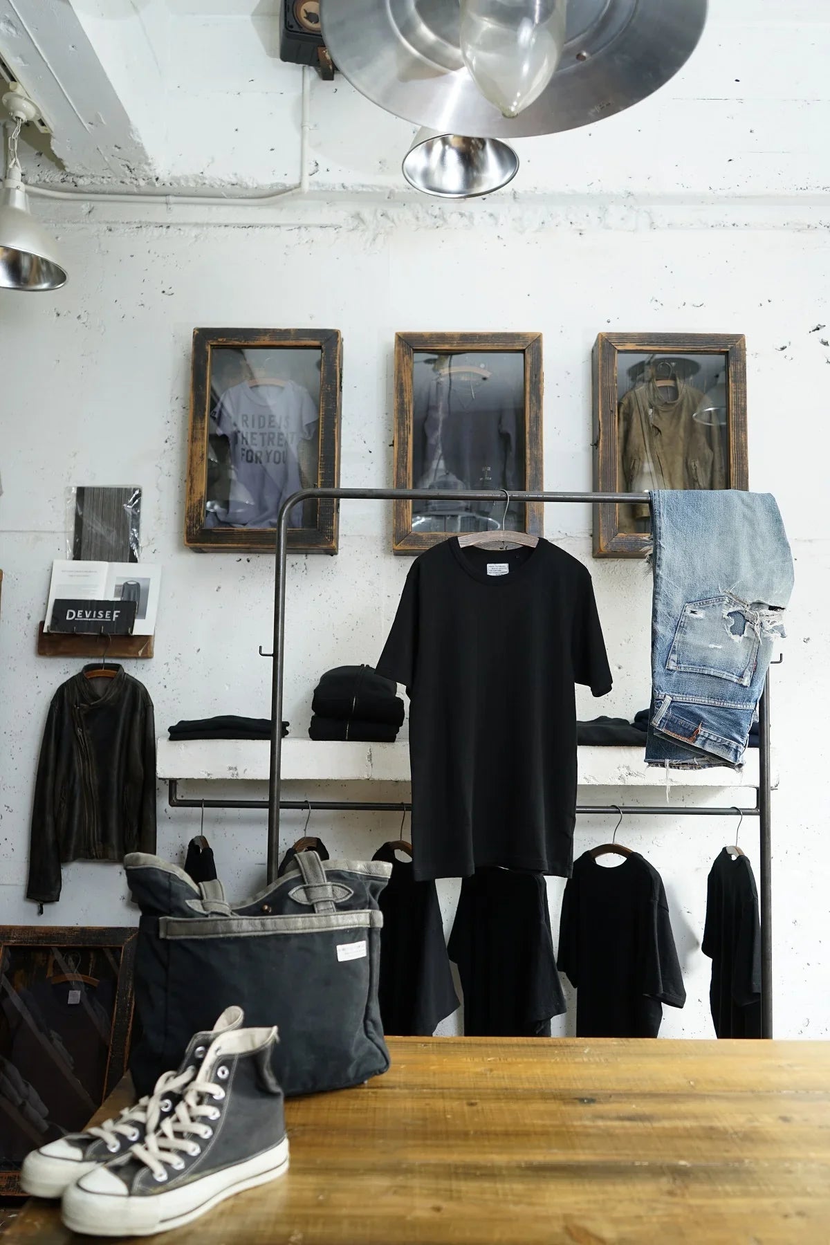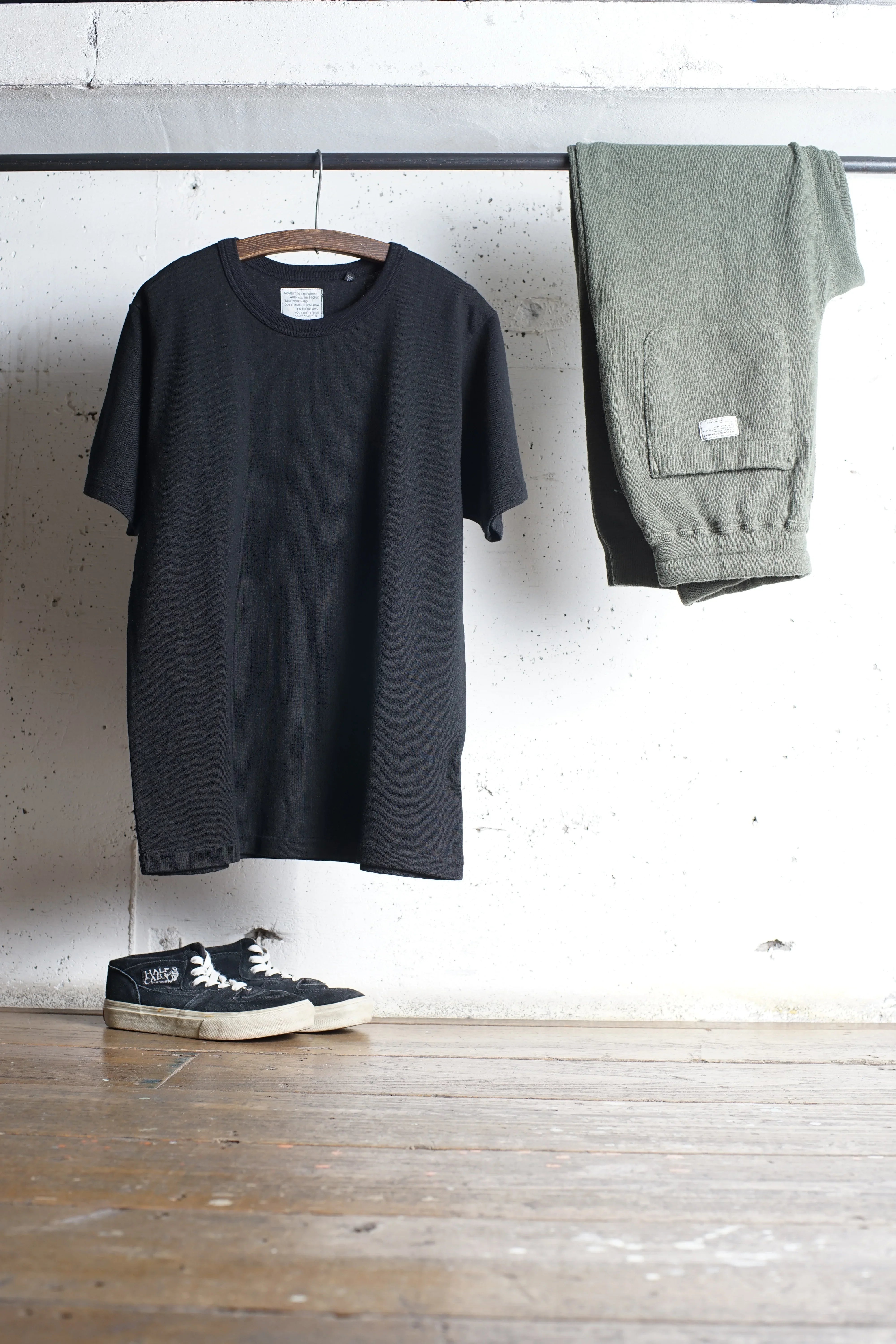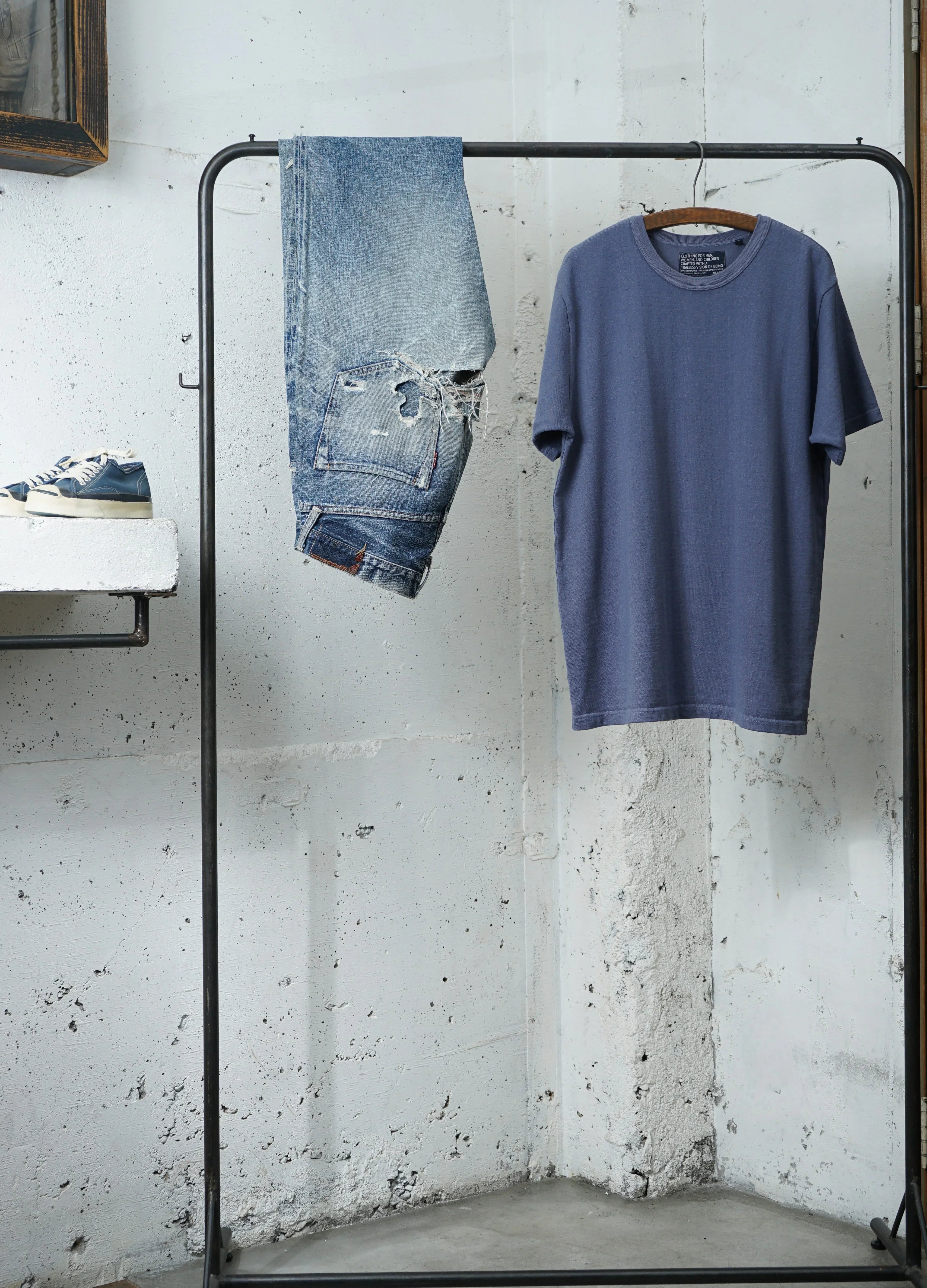 コットン×レーヨンのブレンド糸を使い、DF独自のレシピでゆっくりと編み上げることで、柔らかさと耐久性があり、着るほどに肌に馴染む極上の着心地に。