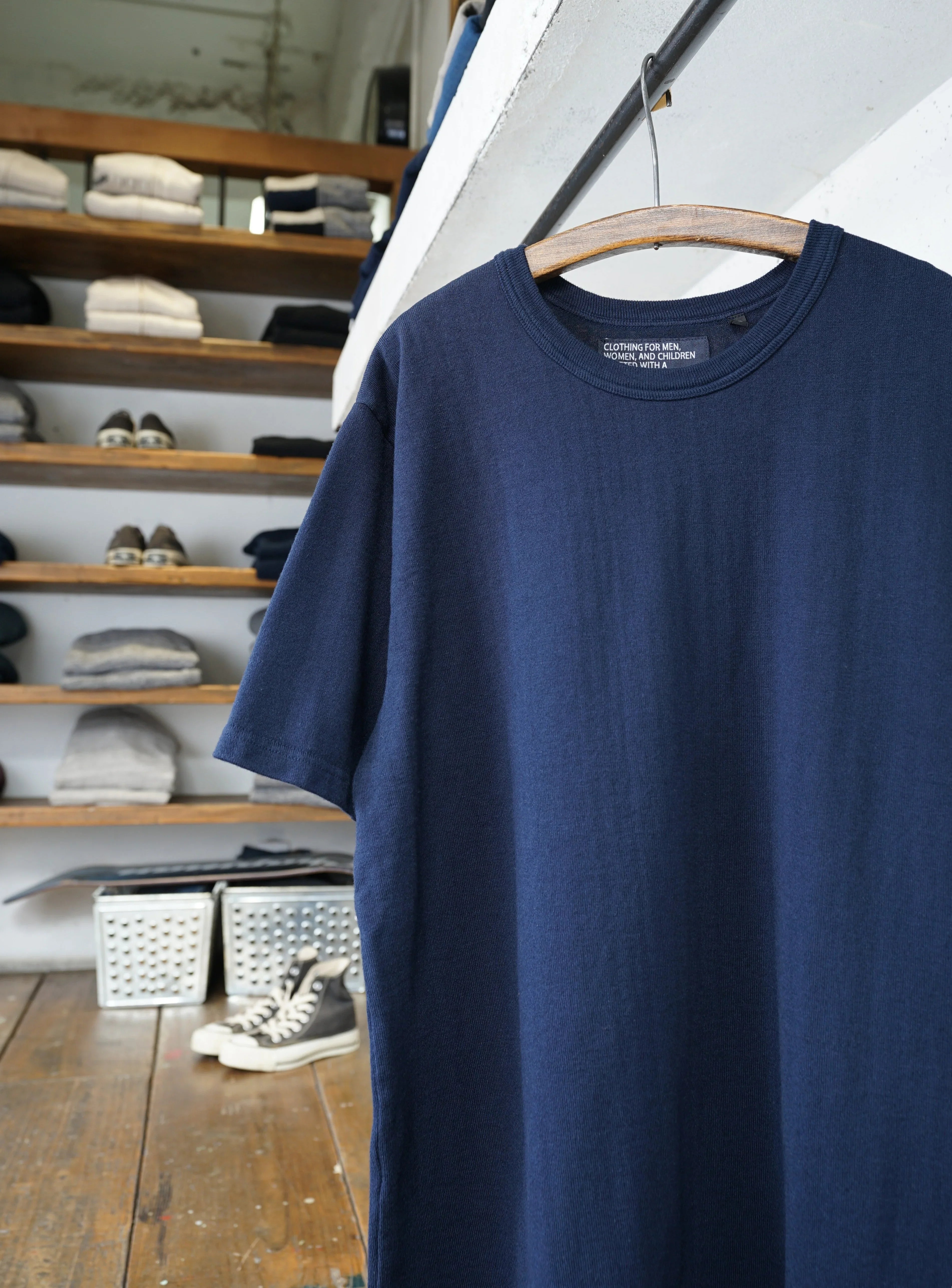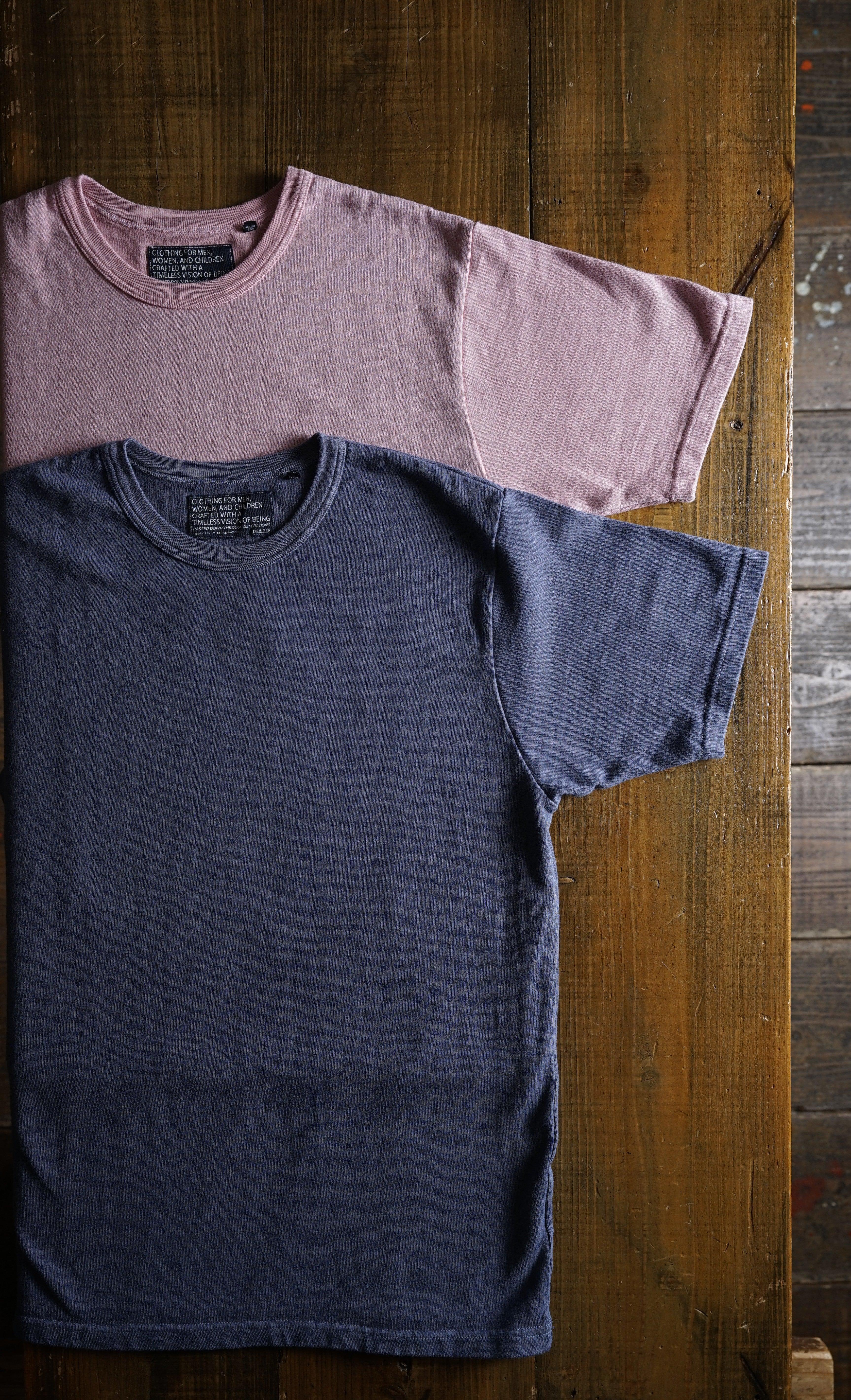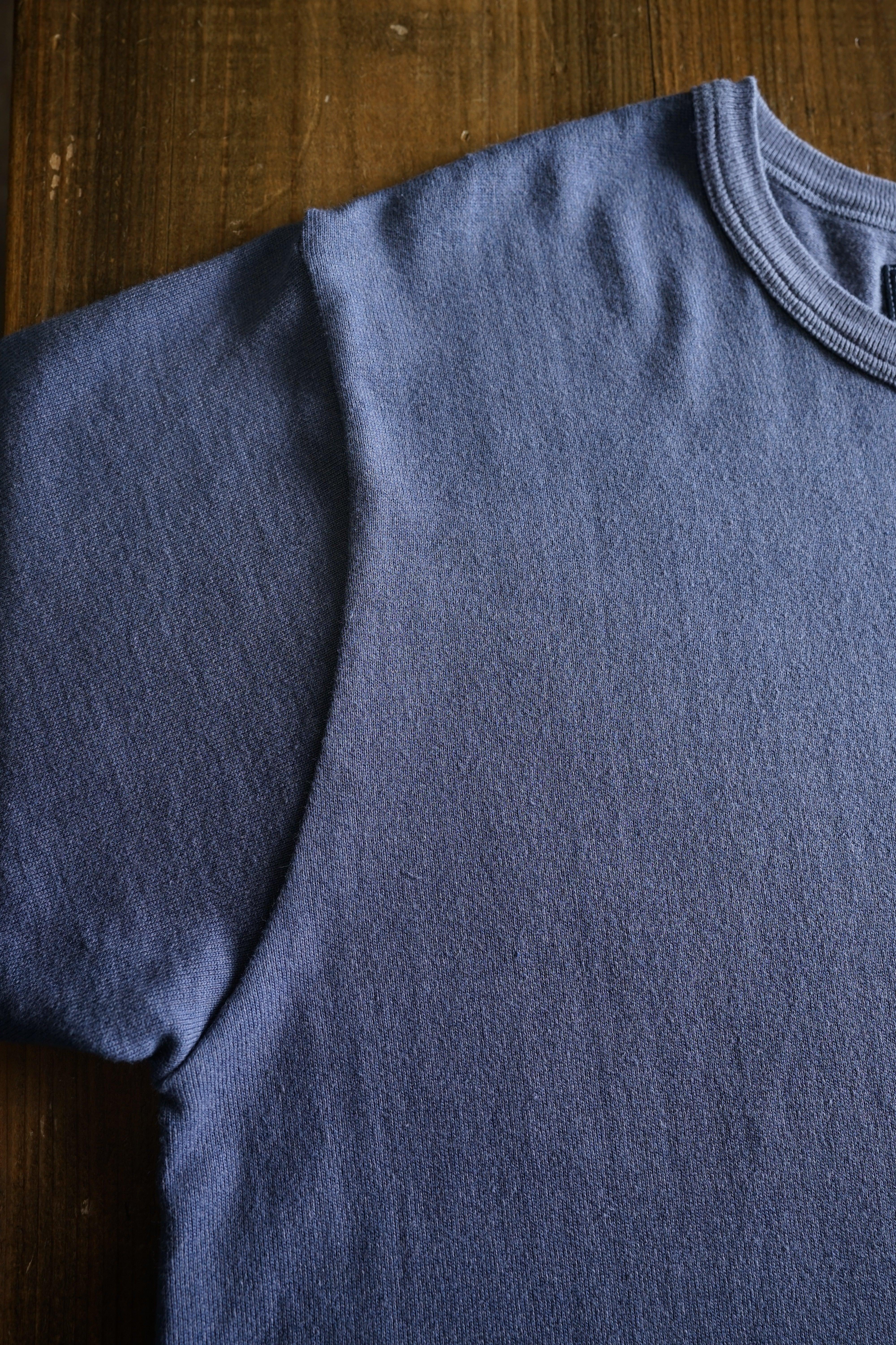 旧式吊り編み機で編み上げた、綿とレーヨンのブレンド糸を使用したやや厚めの天竺生地で、綿100%とは一味違う、艶のある綺麗めの風合いに仕上がっています。