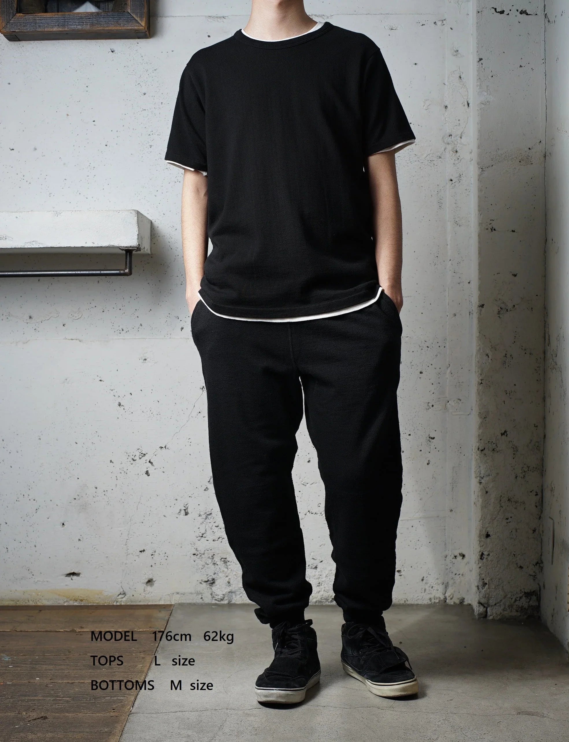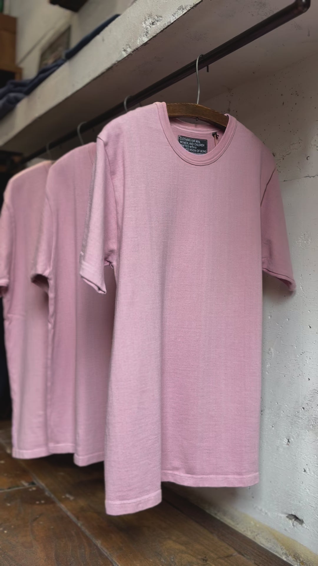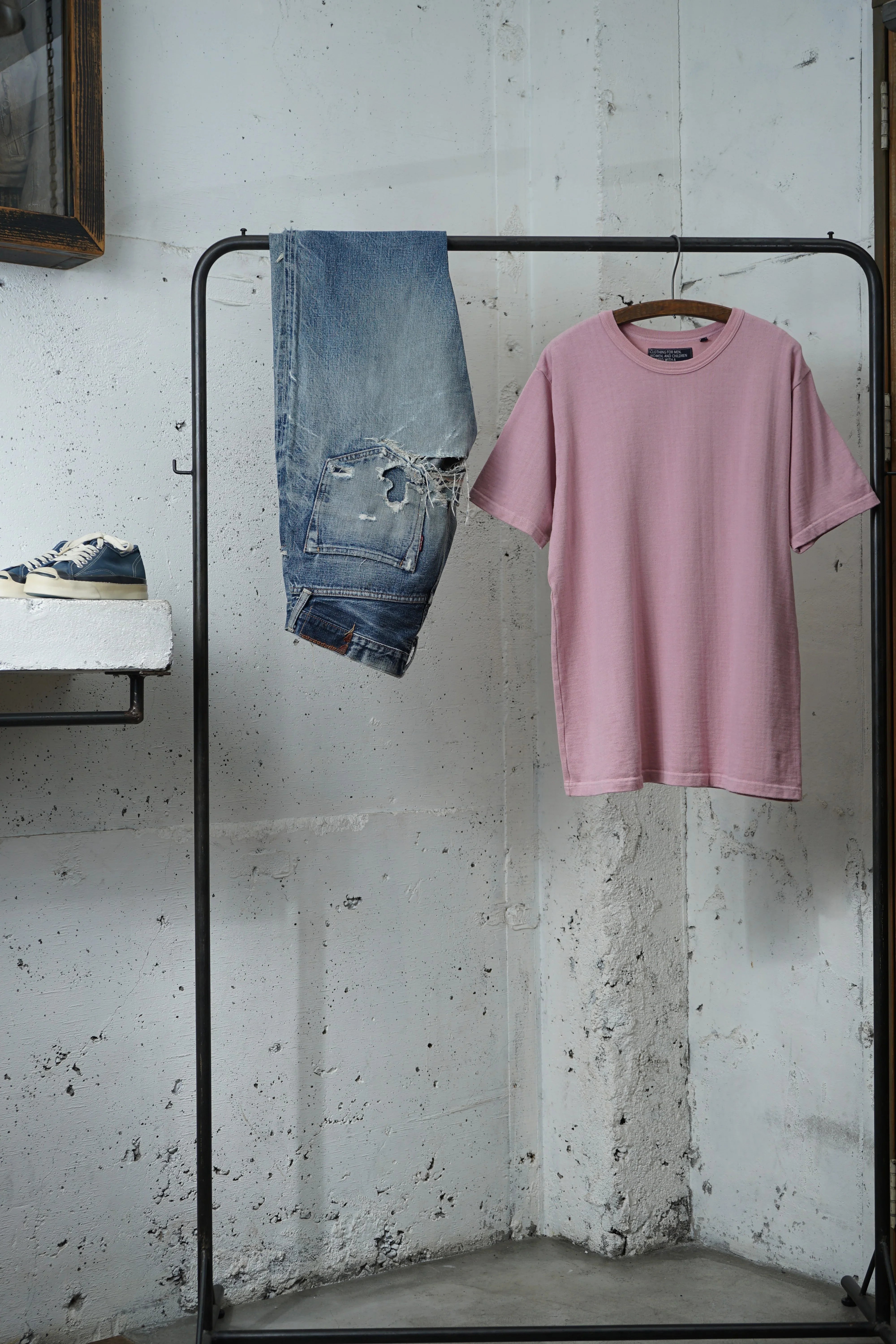 旧式吊り編み機で編み上げた、綿とレーヨンのブレンド糸を使用したやや厚めの天竺生地で、綿100%とは一味違う、艶のある綺麗めの風合いに仕上がっています。