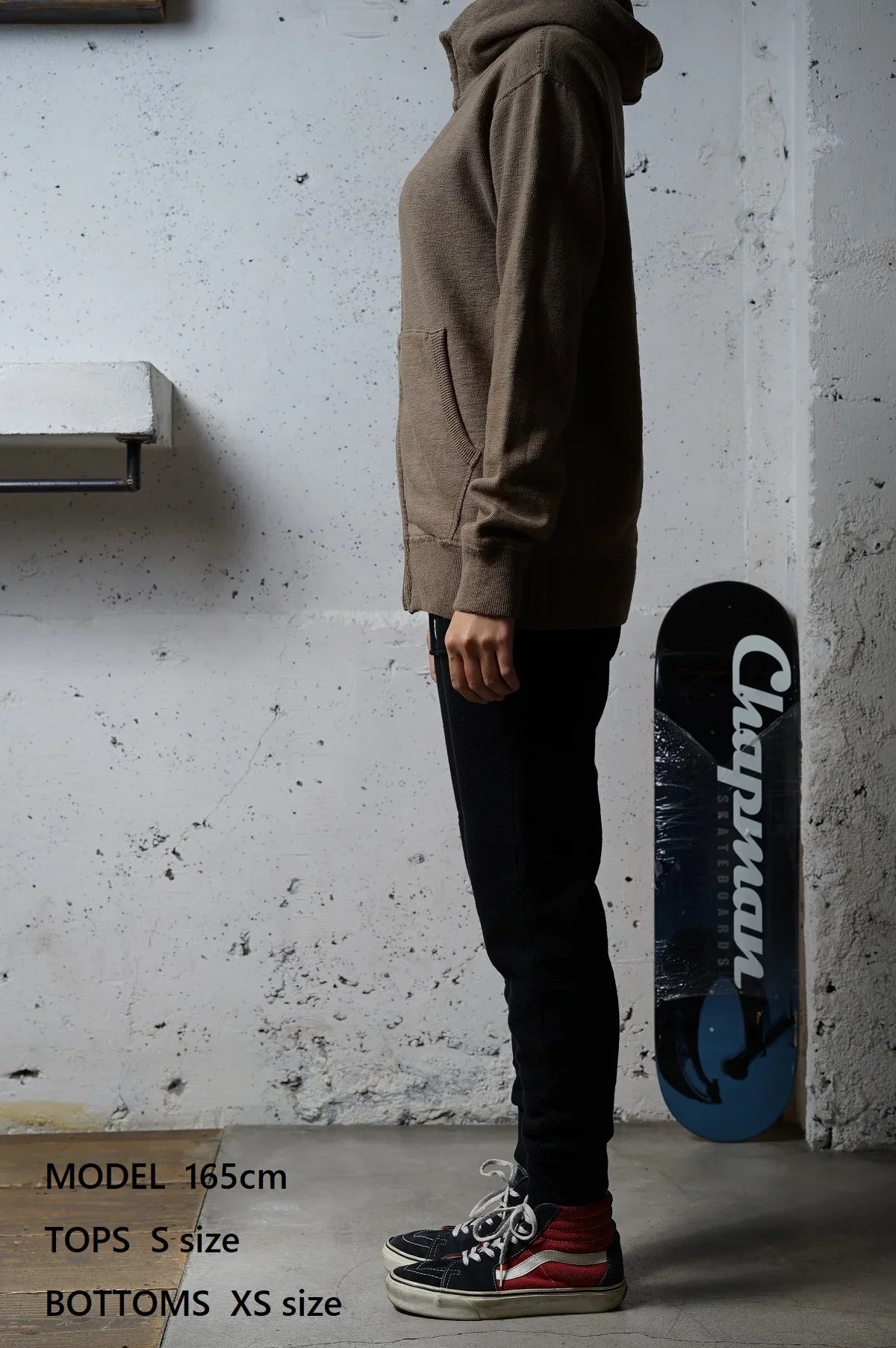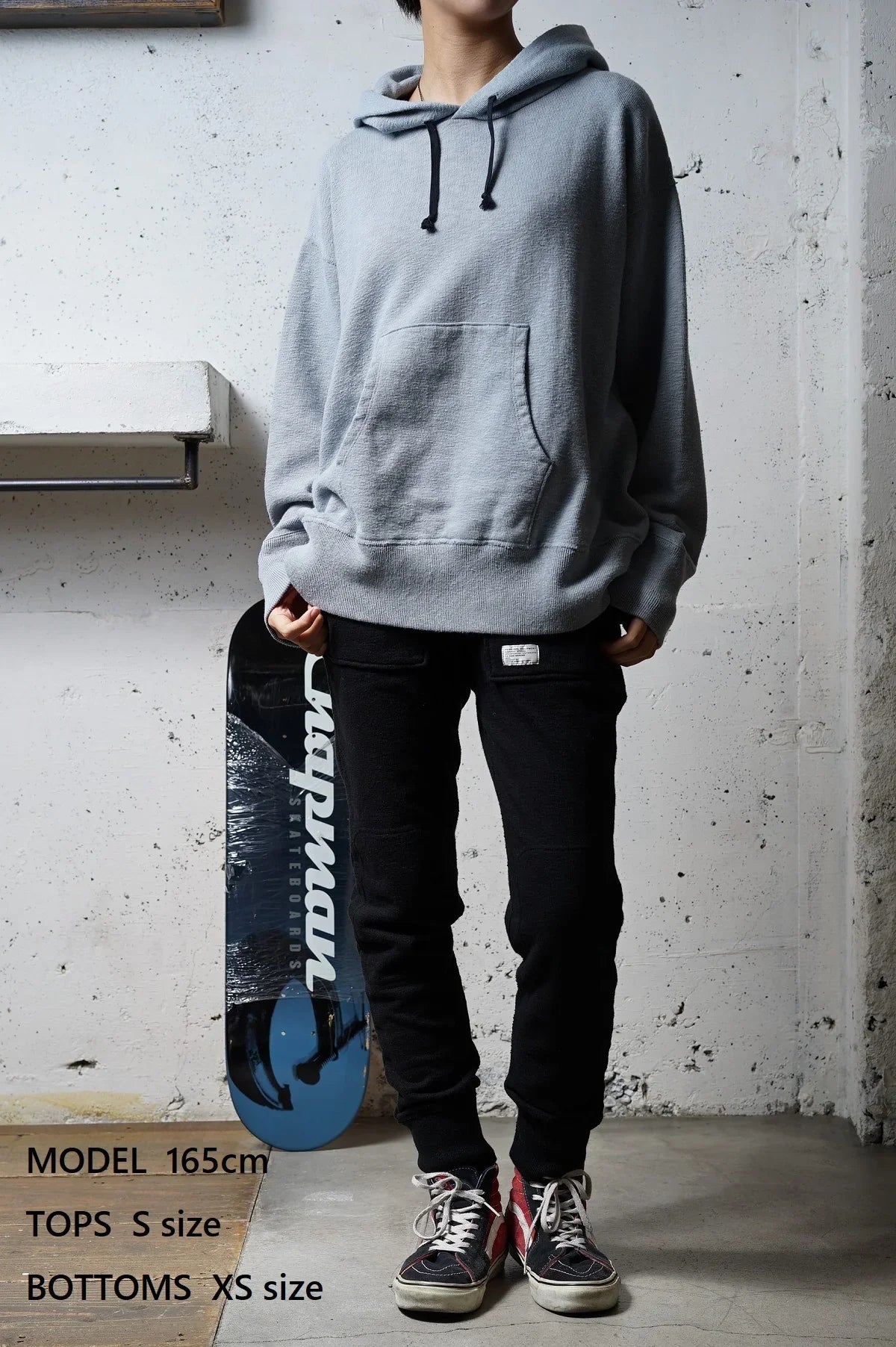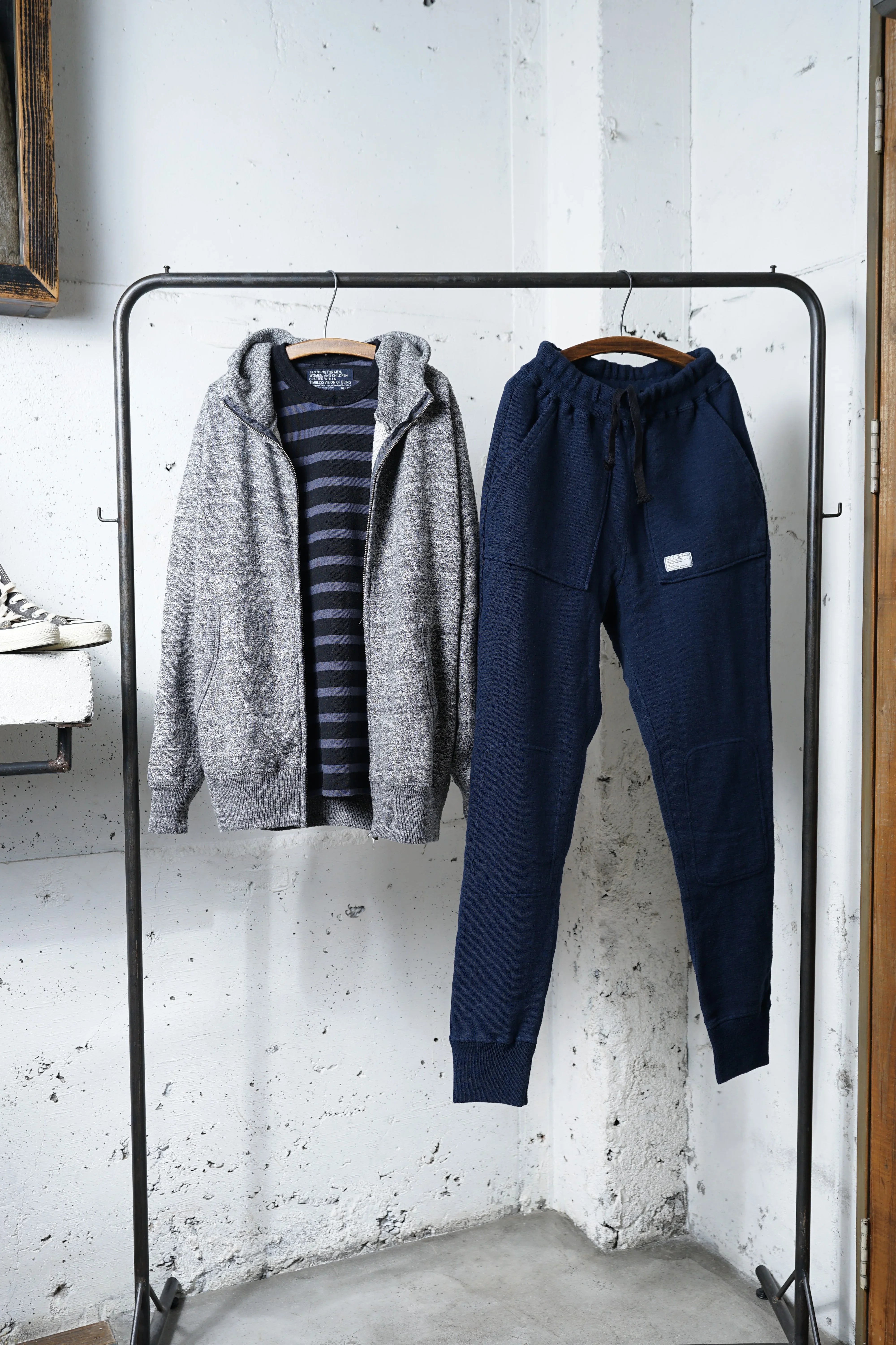 完全オリジナルの裏毛生地を使用。希少な旧式のトンプキン編み機を使い、別注の糸選びから番手の設定、編みの調整まで何度も試行錯誤を重ねました。