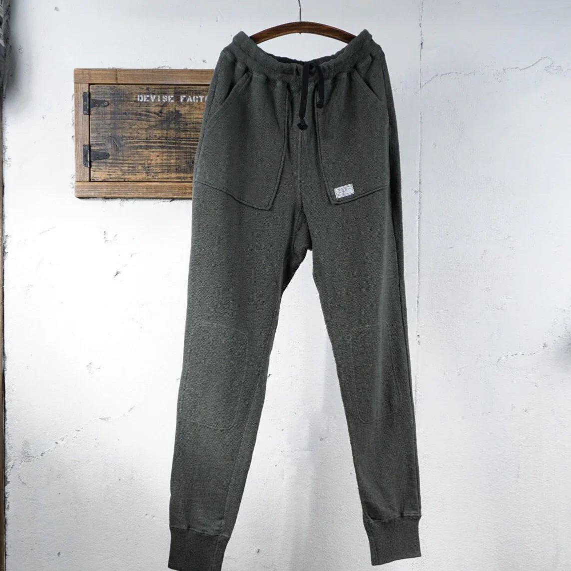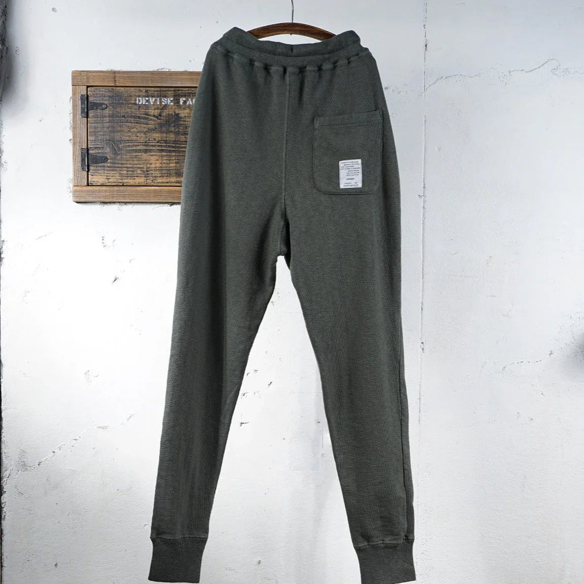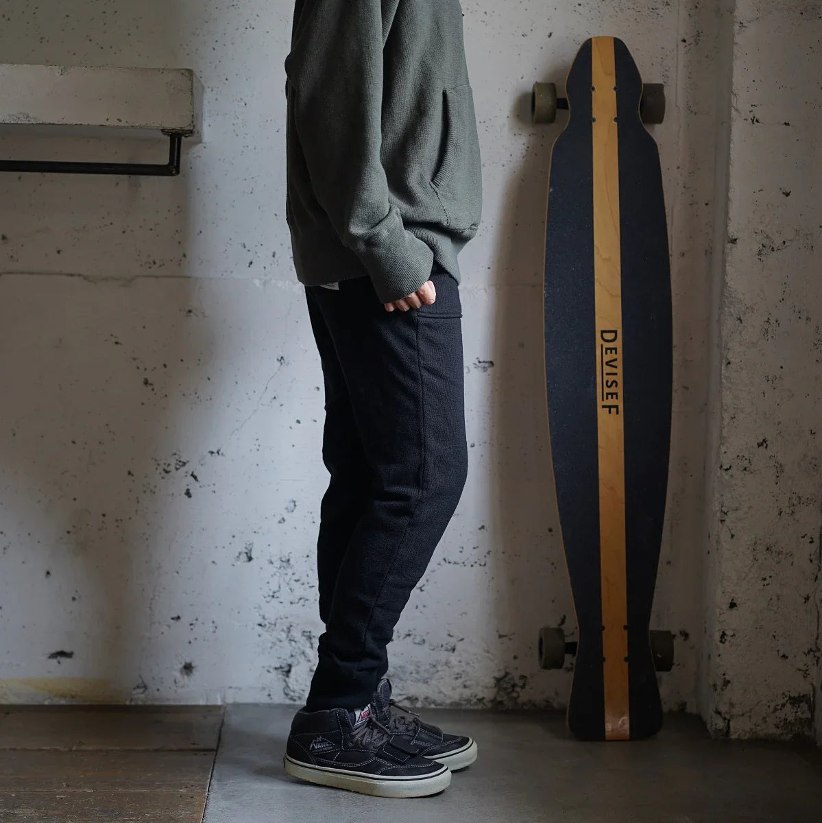スウェットパンツの実用性と、上品な雰囲気を兼ね備えた一着です。