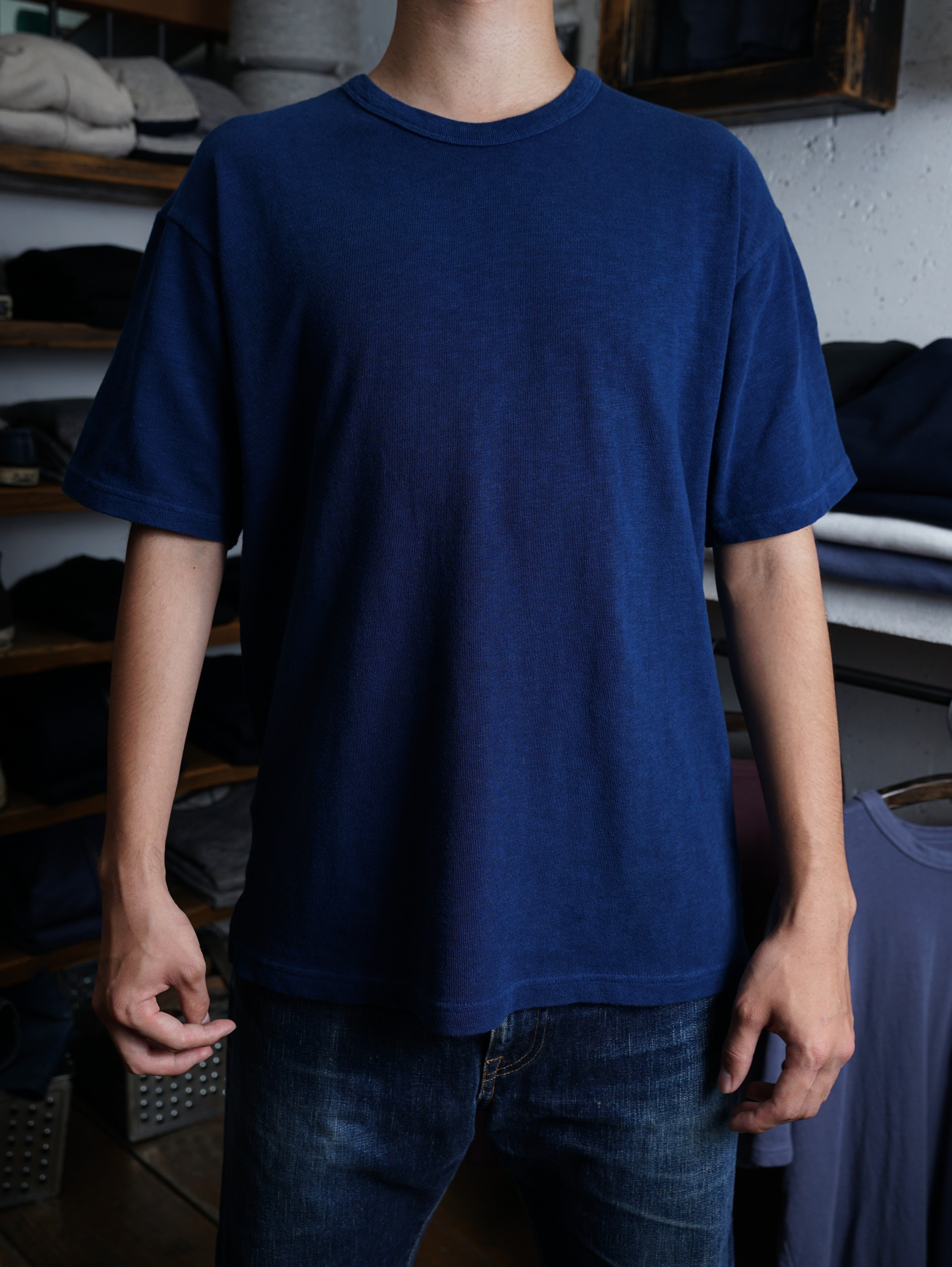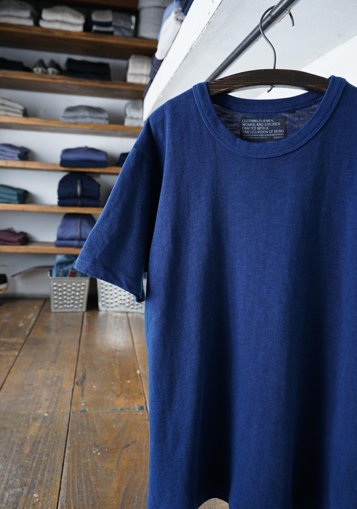 天然藍染めは一着ずつ丁寧に染められ、手仕事が生み出す深く美しいインディゴブルー。