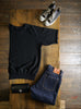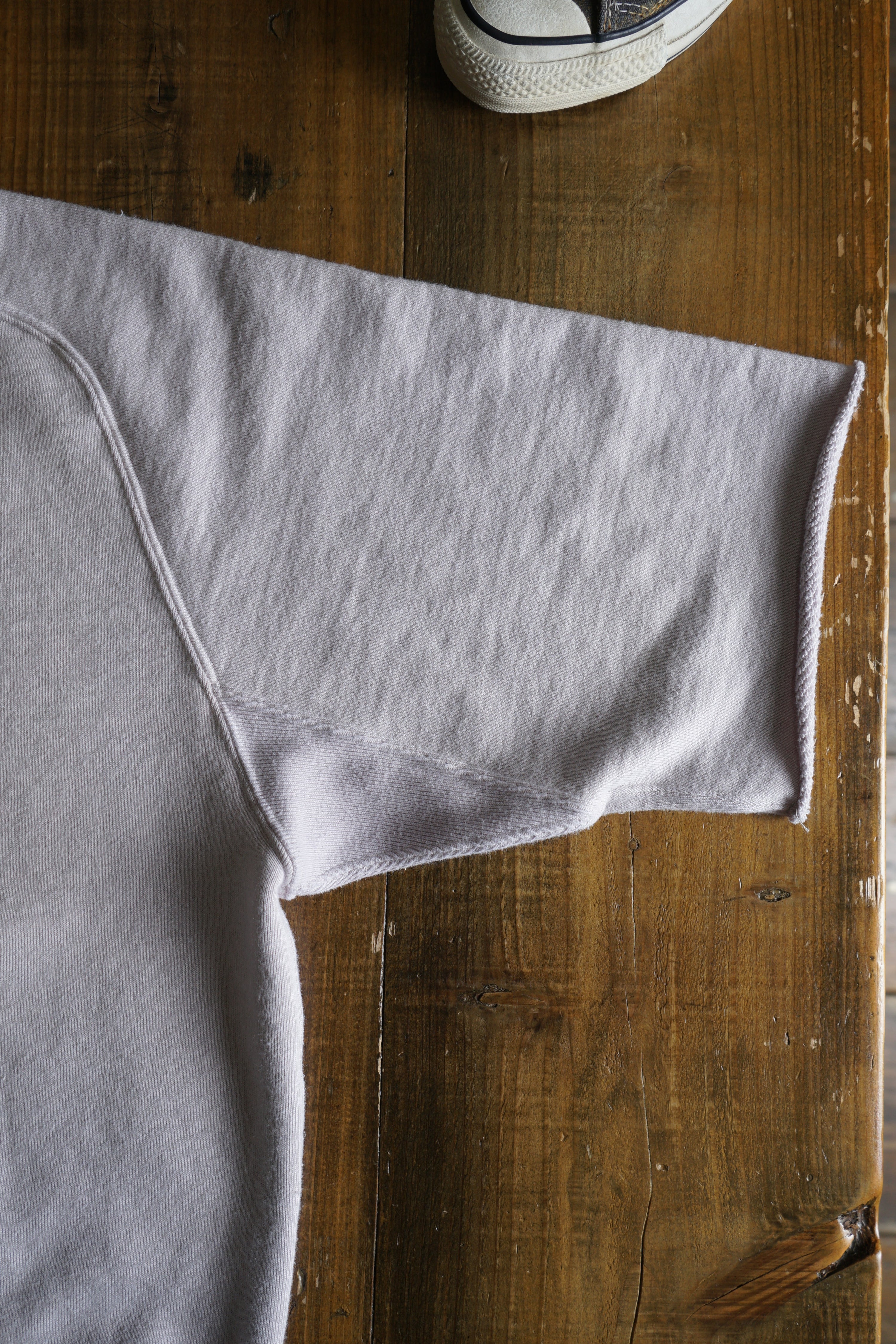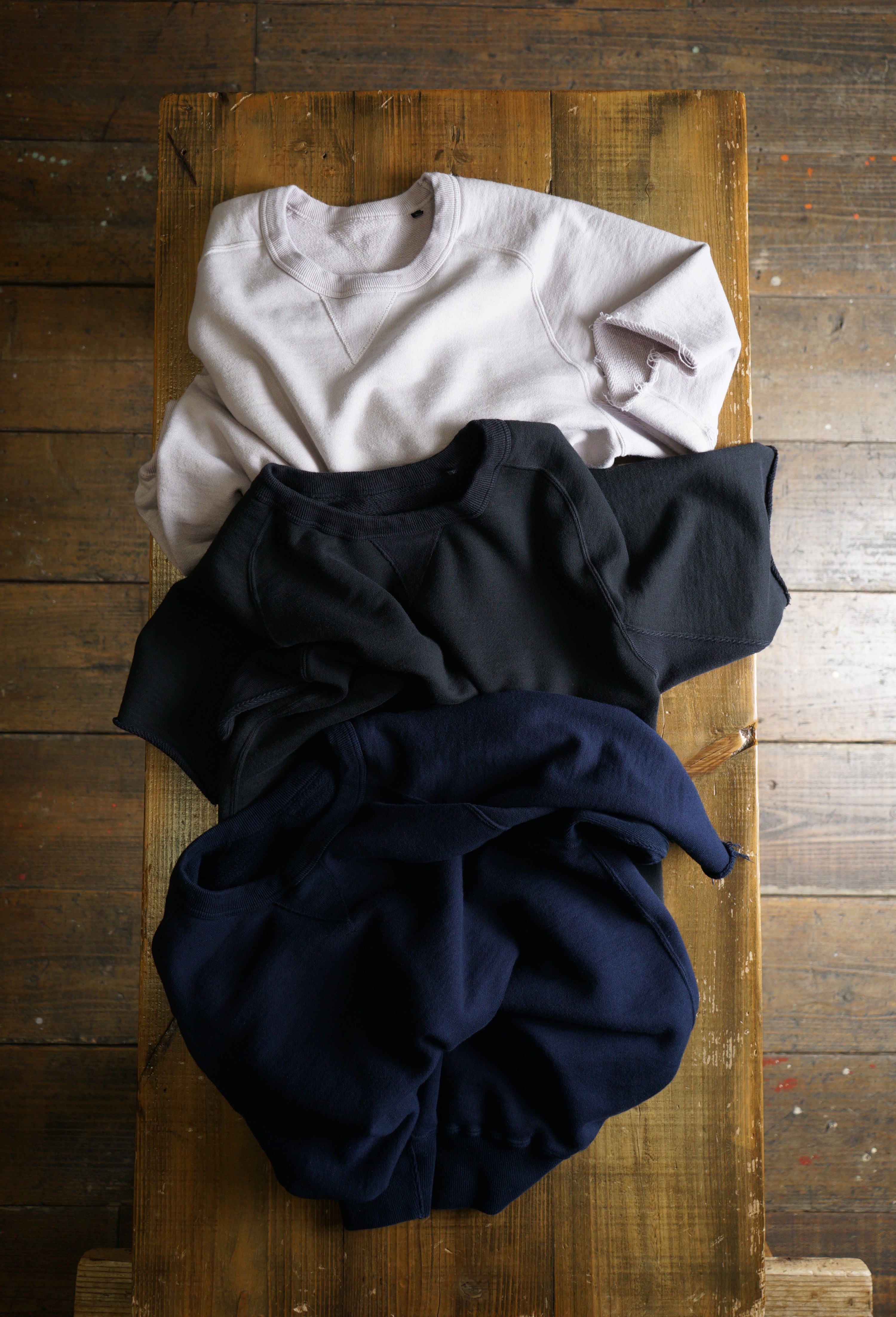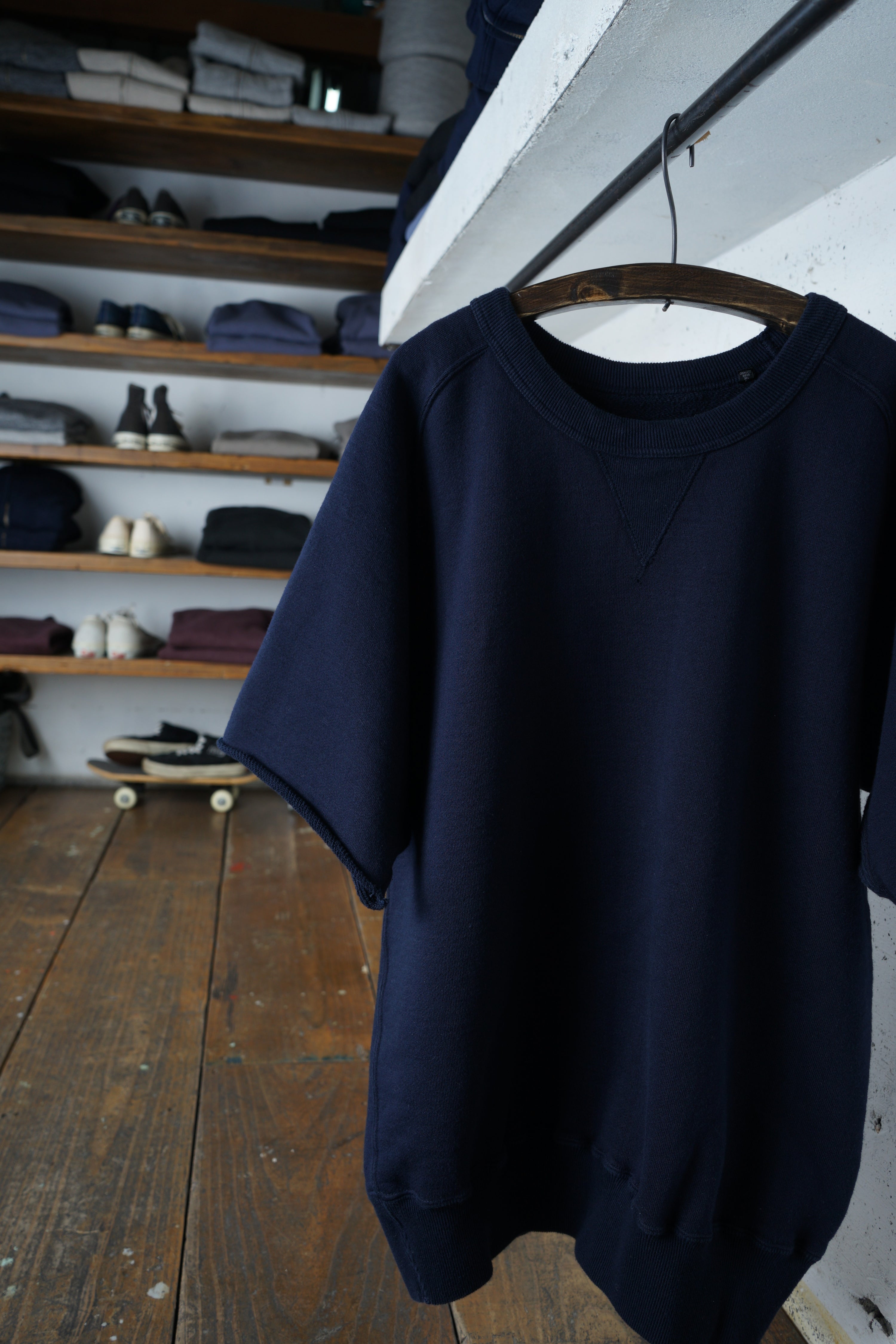 そのため、「縮みきった状態」が新品であり、洗濯による急激なサイズ変化はほとんどありません。ただし、着用を続けることで生地が緩み、洗濯や乾燥機の使用(※一部の杢天竺シリーズを除く)でわずかに縮みます。この緩みと縮みを繰り返すことで、生地が徐々にその人の身体に馴染んでいきます。