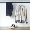 Nous utilisons un tissu polaire chiné entièrement original. À l'aide d'une machine à tricoter Tompkins, une machine à tricoter ancienne et rare, nous avons multiplié les essais et les erreurs, du choix du fil personnalisé à l'ajustement du titre et au tricotage.