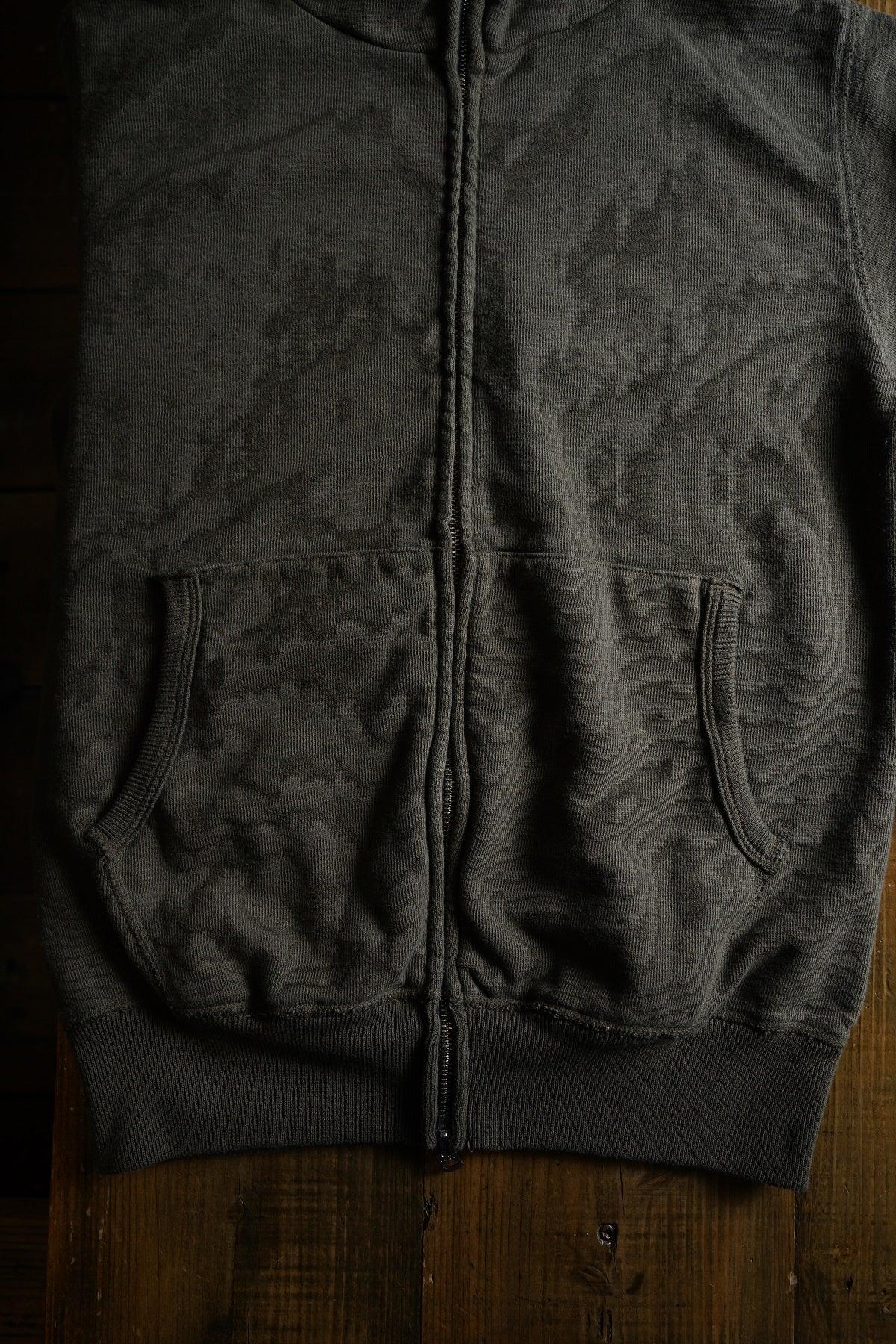 Nous utilisons un tissu polaire entièrement original. À l'aide d'une machine à tricoter Tompkins, une machine à tricoter ancienne et rare, vieille d'environ 100 ans, nous avons procédé à de nombreux essais et erreurs, du choix du fil spécial au réglage du titre et à l'ajustement du tricot.