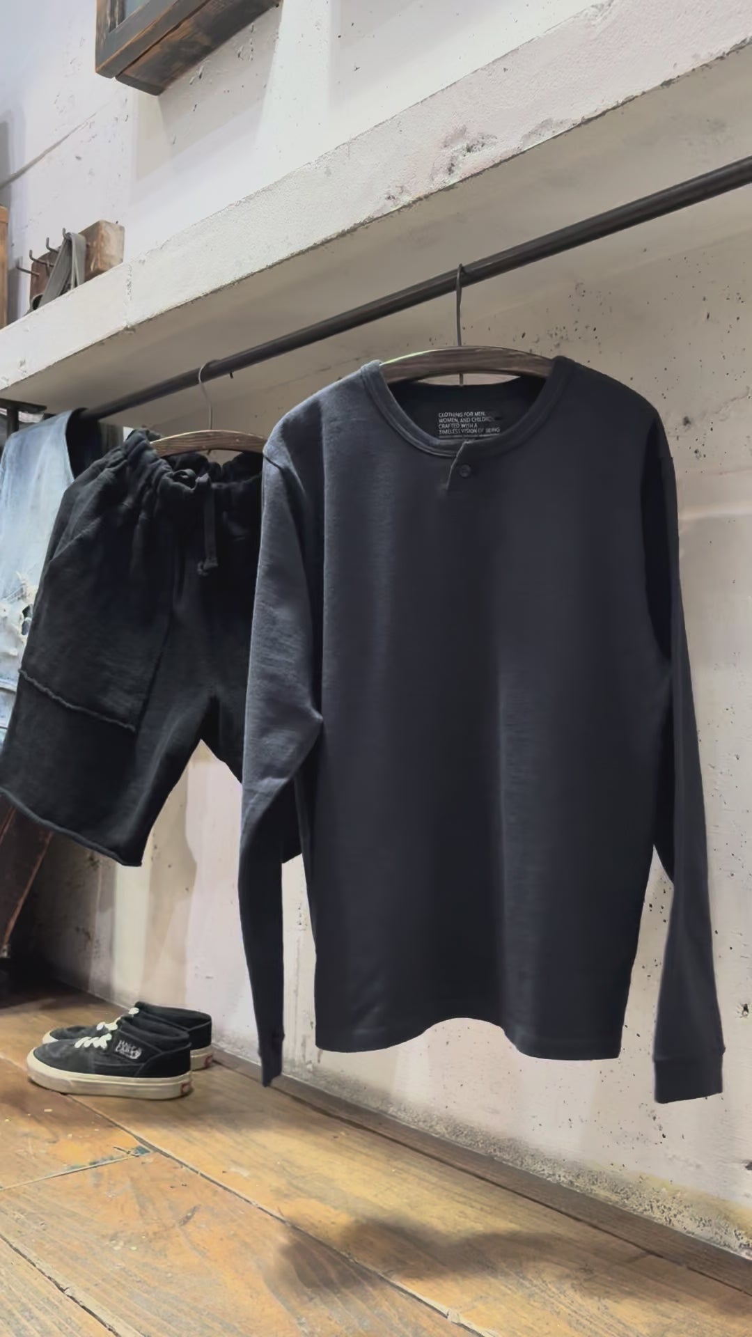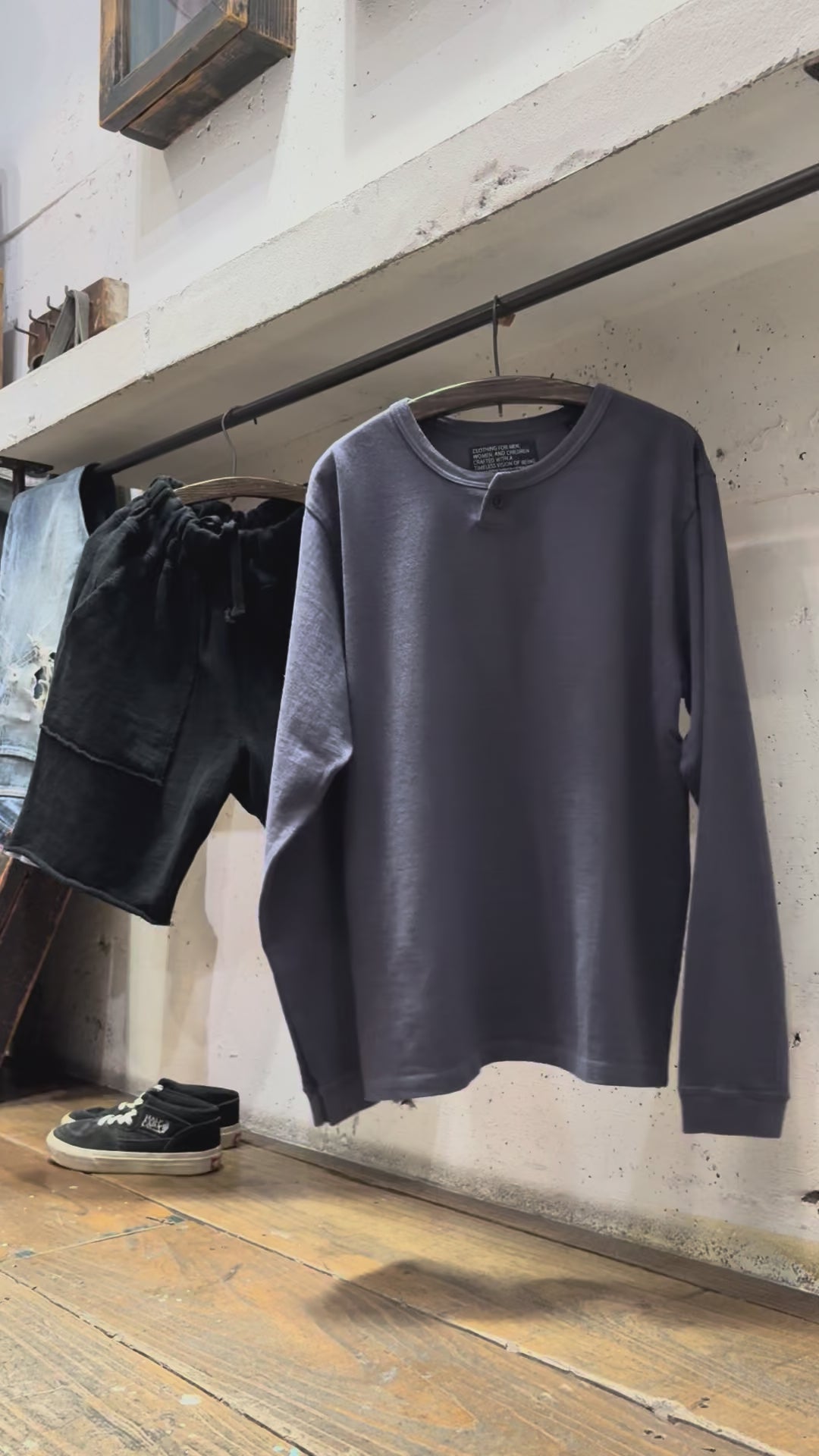 弊社アイテムは定番商品として展開しており、サイズを変えることで雰囲気や着こなしを自由に楽しめます。これもひとつの楽しみ方としてぜひご活用ください。