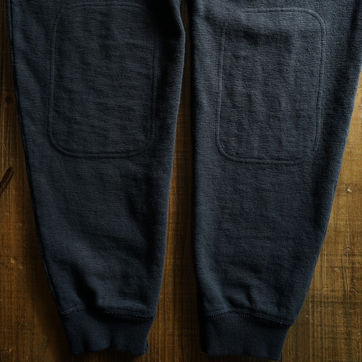 両ひざの裏部に天竺生地を重ね、着用を重ねても膝が出にくい仕様に。長く愛用できる耐久性を備えています。