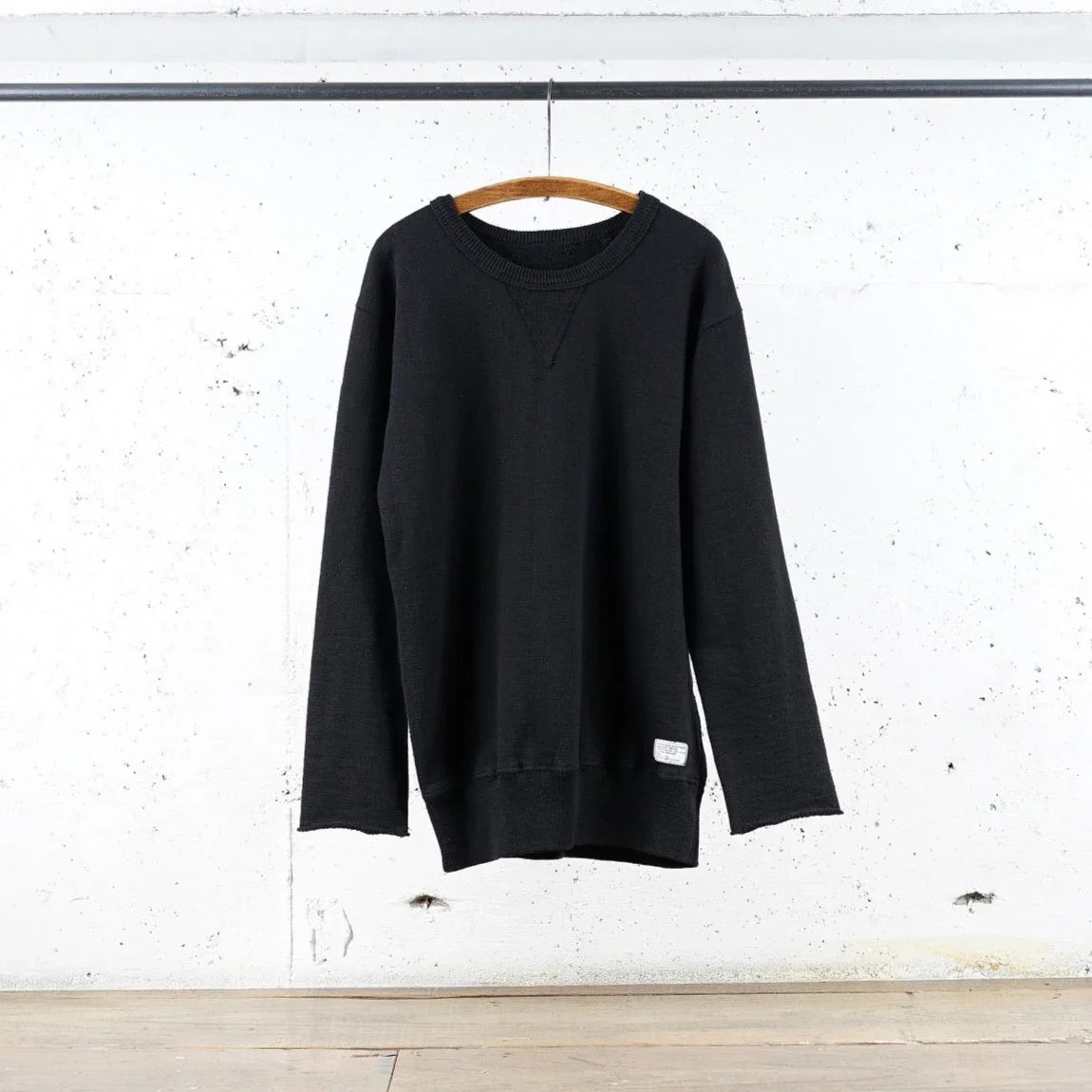 裾部にもさりげなくラベルがあり、被らないワンポイントデザインです。