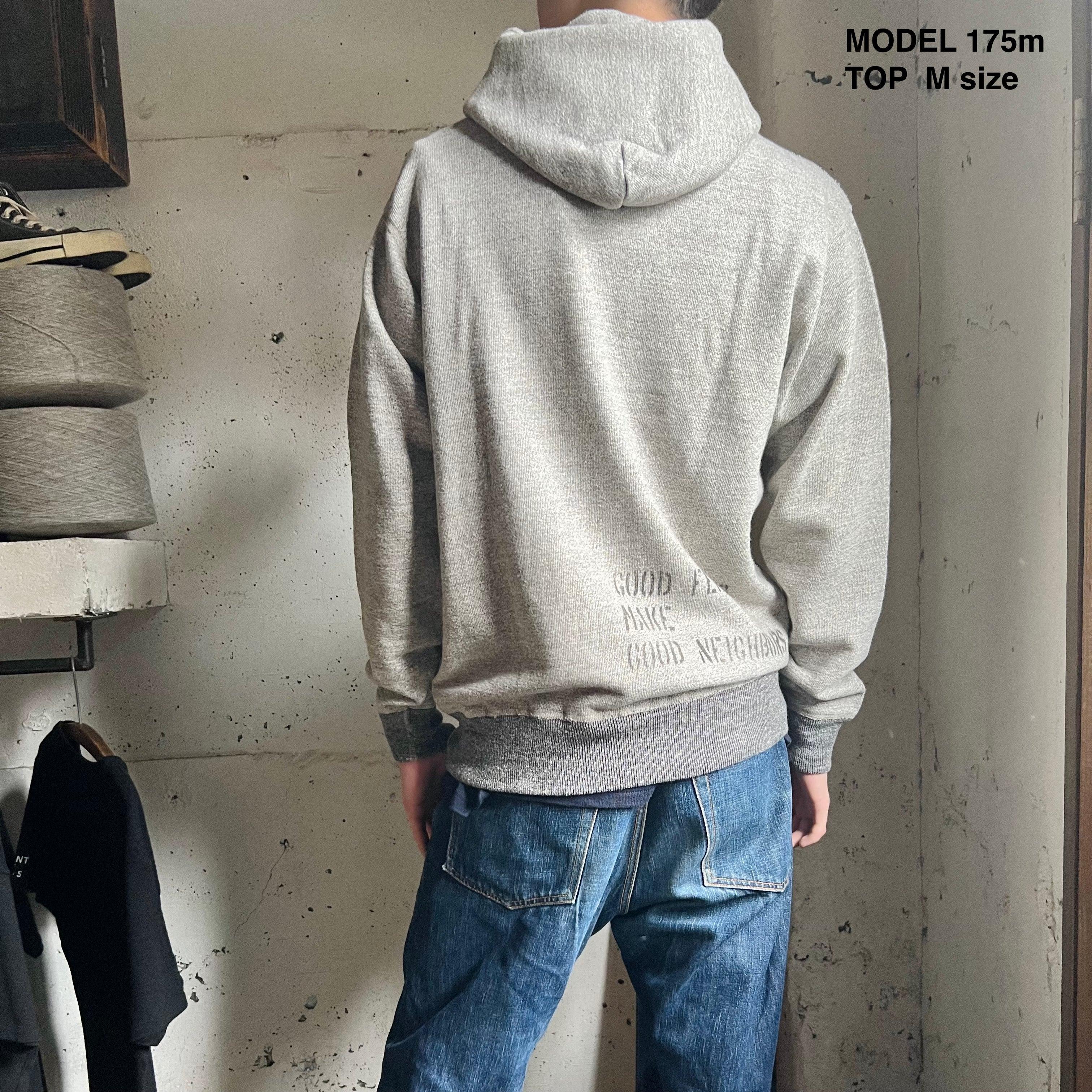 完全オリジナルの杢裏毛生地を使用。希少な旧式のトンプキン編み機を使い、完全別注の糸選びから番手の設定、編みの調整まで何度も試行錯誤を重ねました。