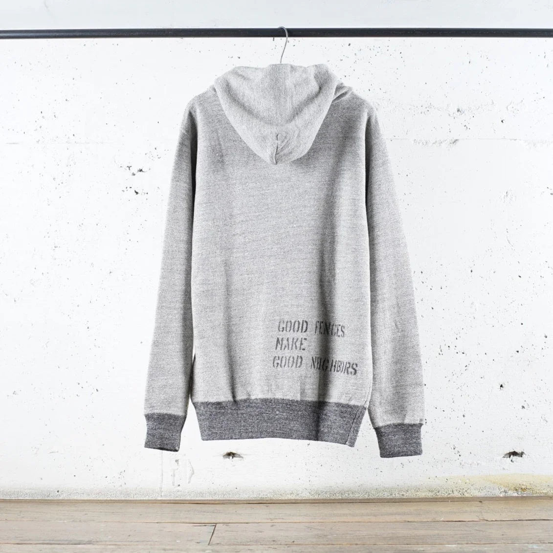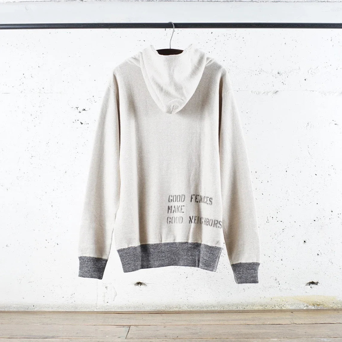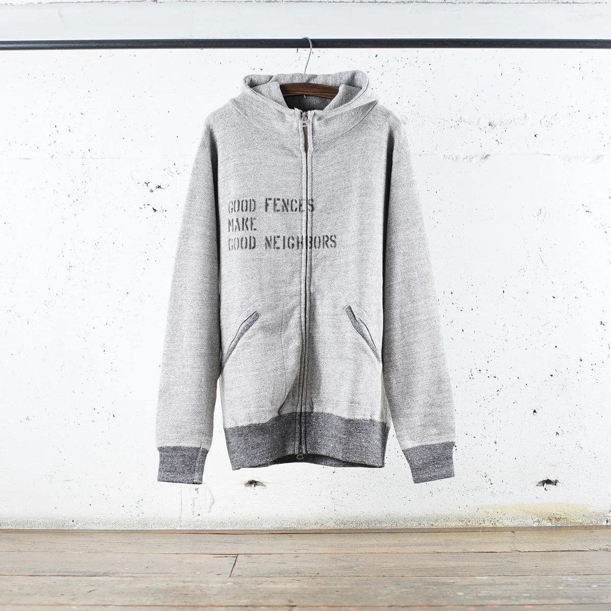 2007年に誕生してから長年愛され続けている定番のハイネック ジップパーカーに、職人さんが前身、後身に1枚ずつ丁寧に手刷りした、「ステンシルのスプレープリント」バージョンです。